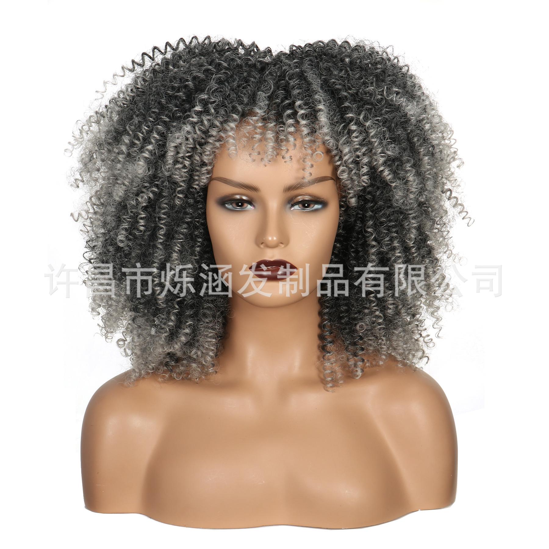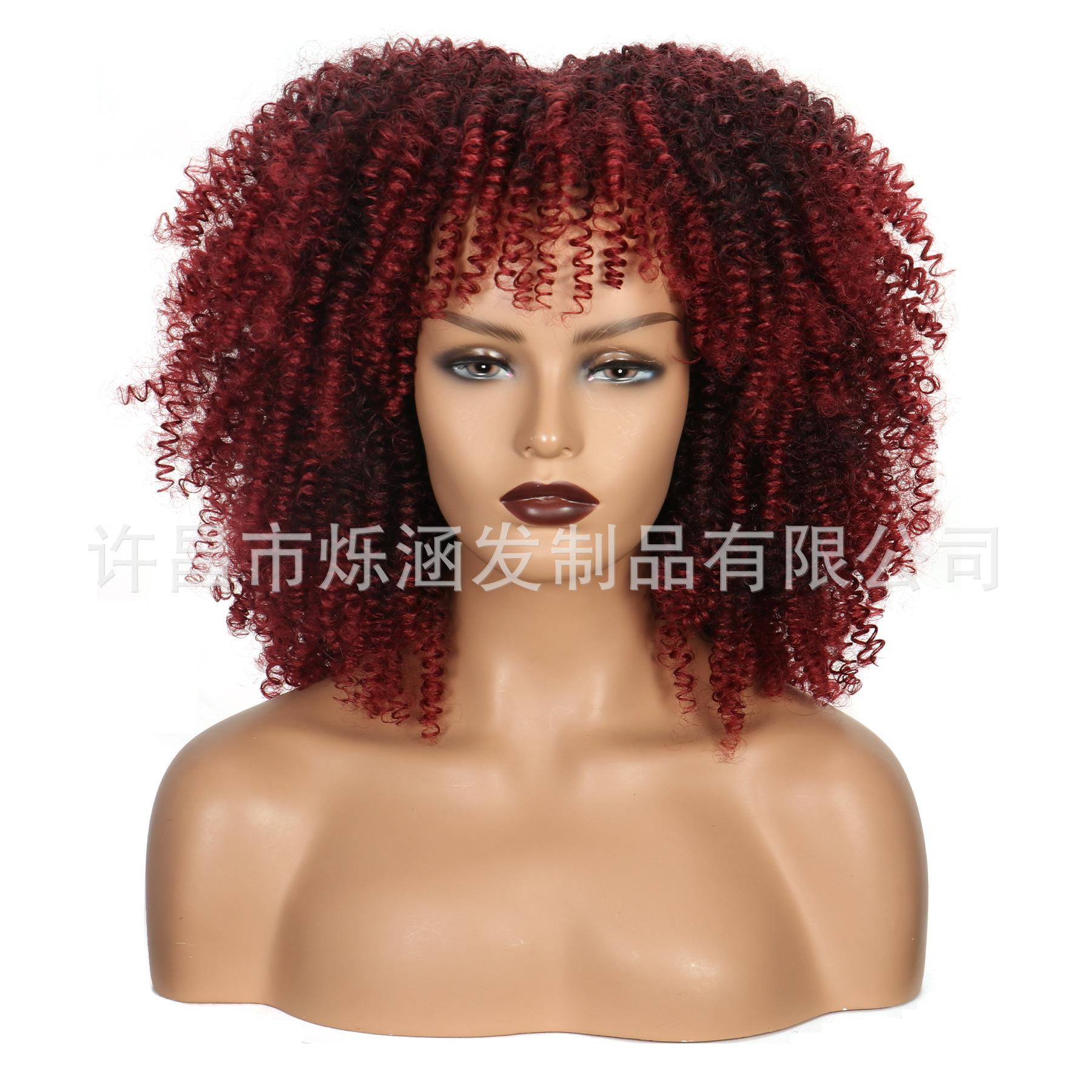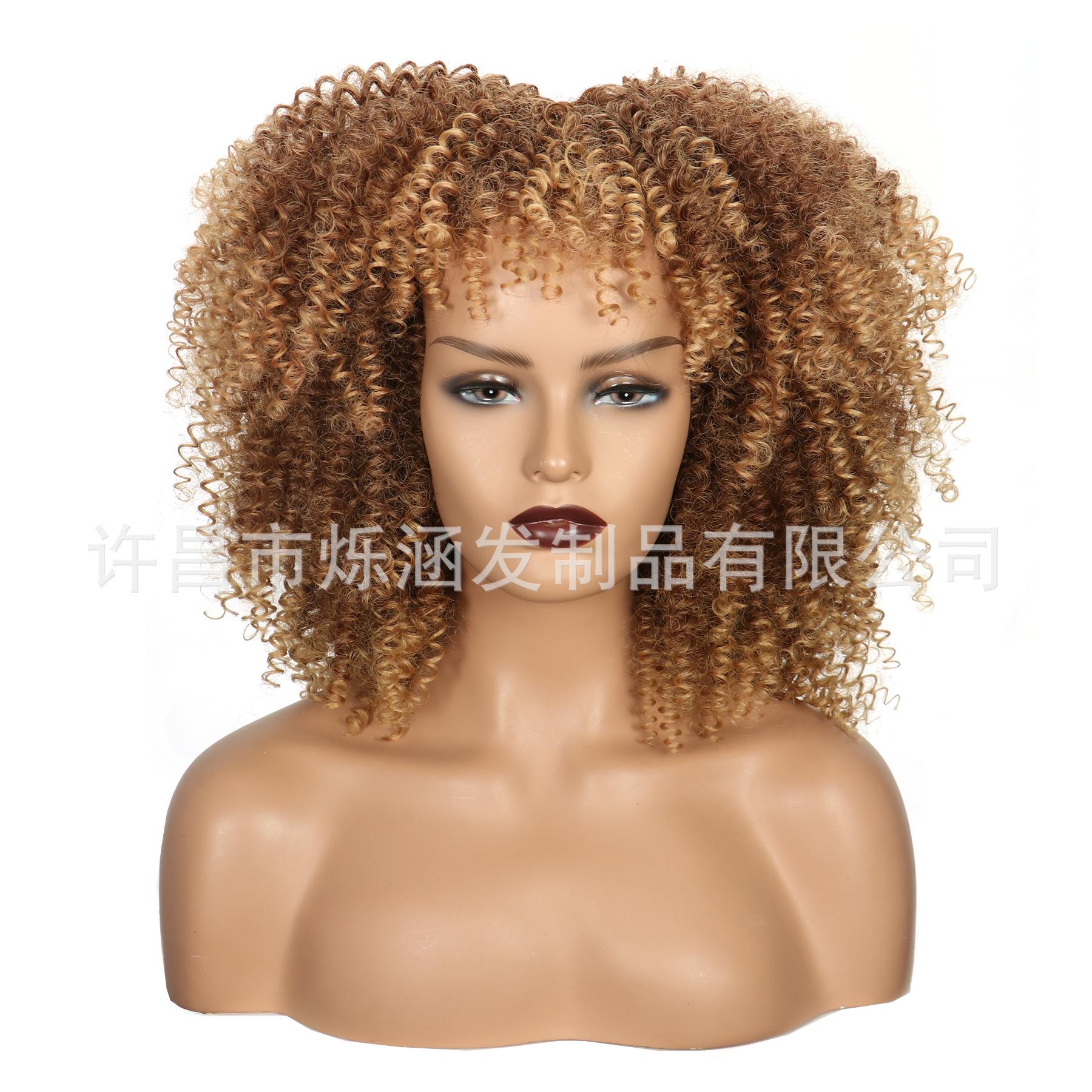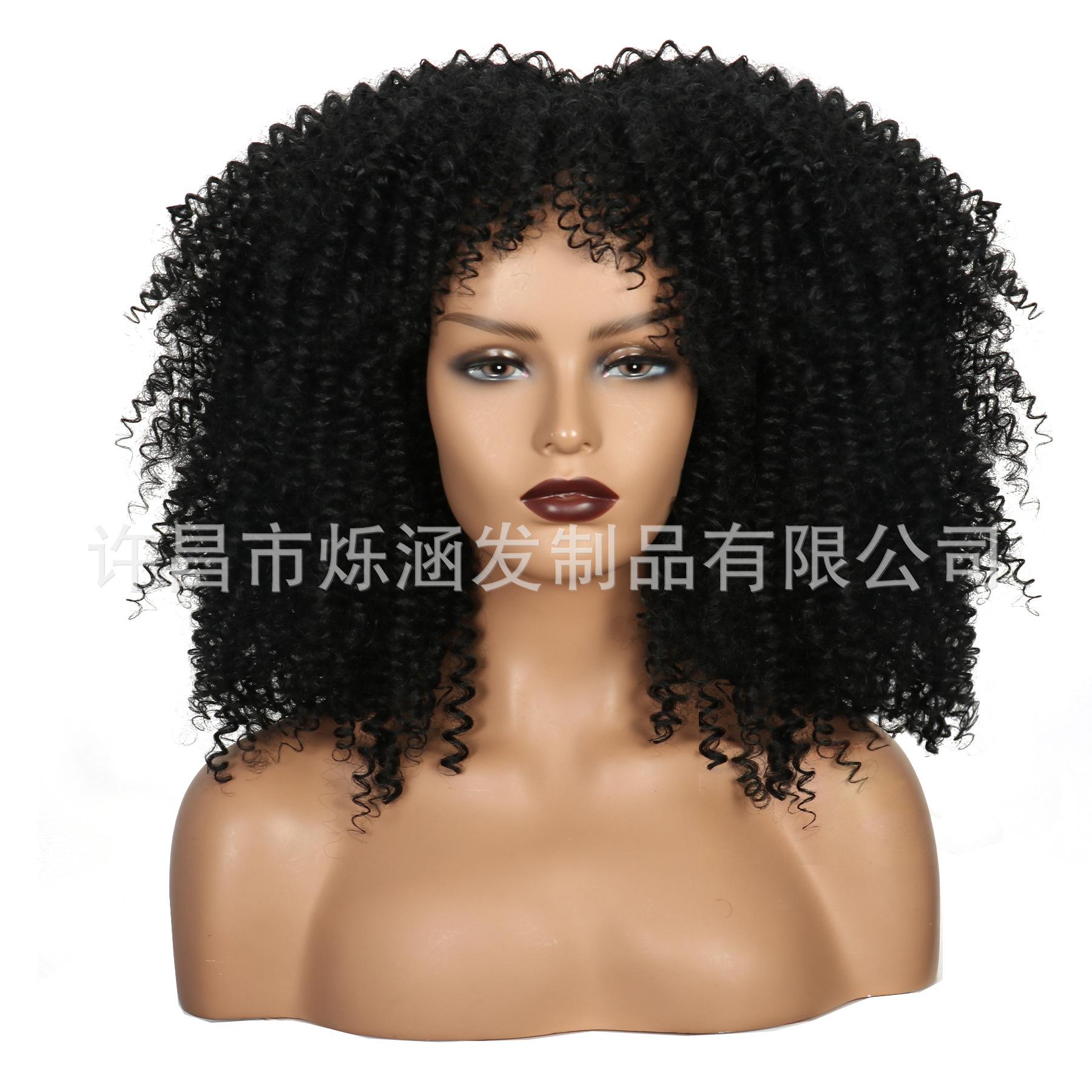 Xuchang peruca venda direta peruca feminina amazon europeu e americano moda africano pequeno cabelo encaracolado afro fibra sintética peruca cabeça
