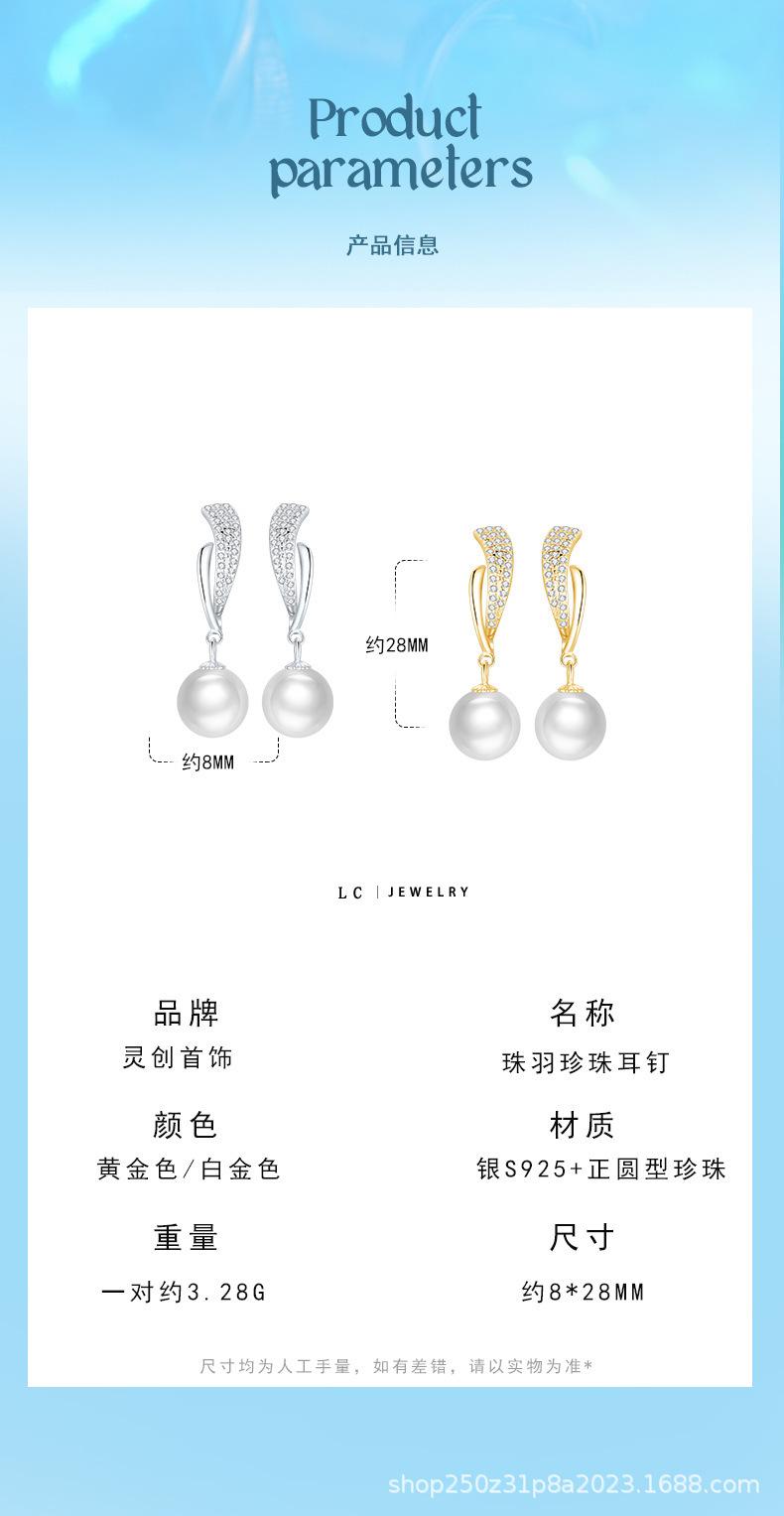 508 bead feather pearl earrings (white gold), 508 bead feather pearl stud earrings (gold)