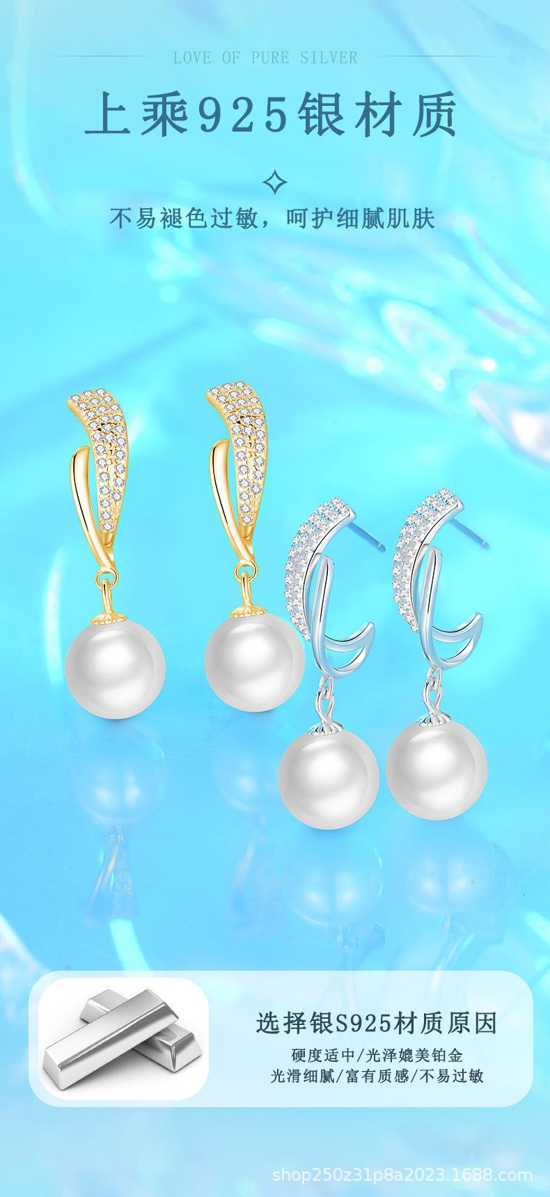 S925 Prata Esterlina frisado Penas Brincos de Pérola Francês Luz Luxo Brincos High-end 2024 Novo Design de Nicho Elegante