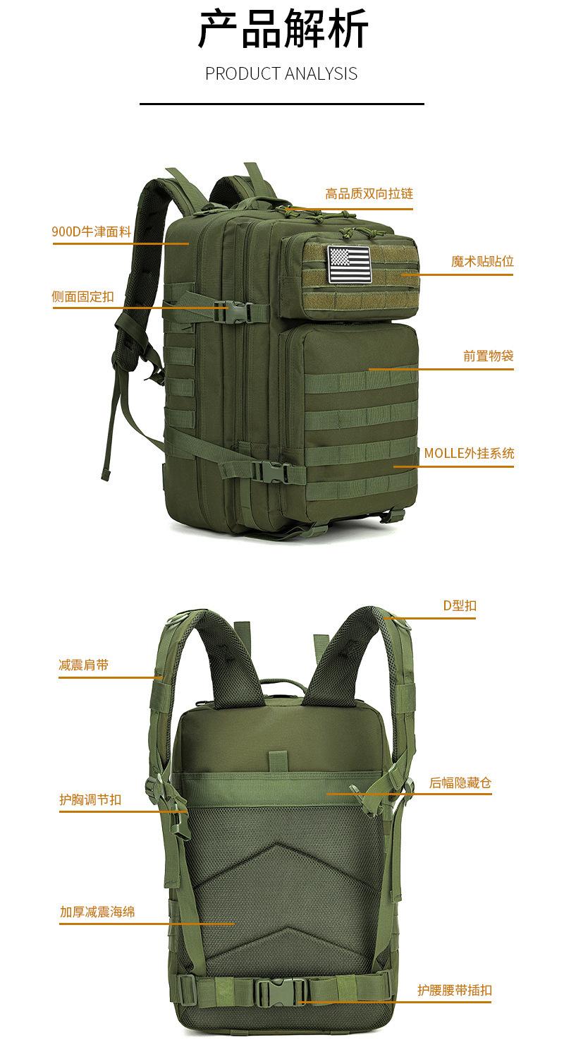 Mochila tática camuflada multifuncional, à prova d'água, resistente ao desgaste, para montanhismo, caminhadas ao ar livre, mochila de acampamento, mochila grande 3P