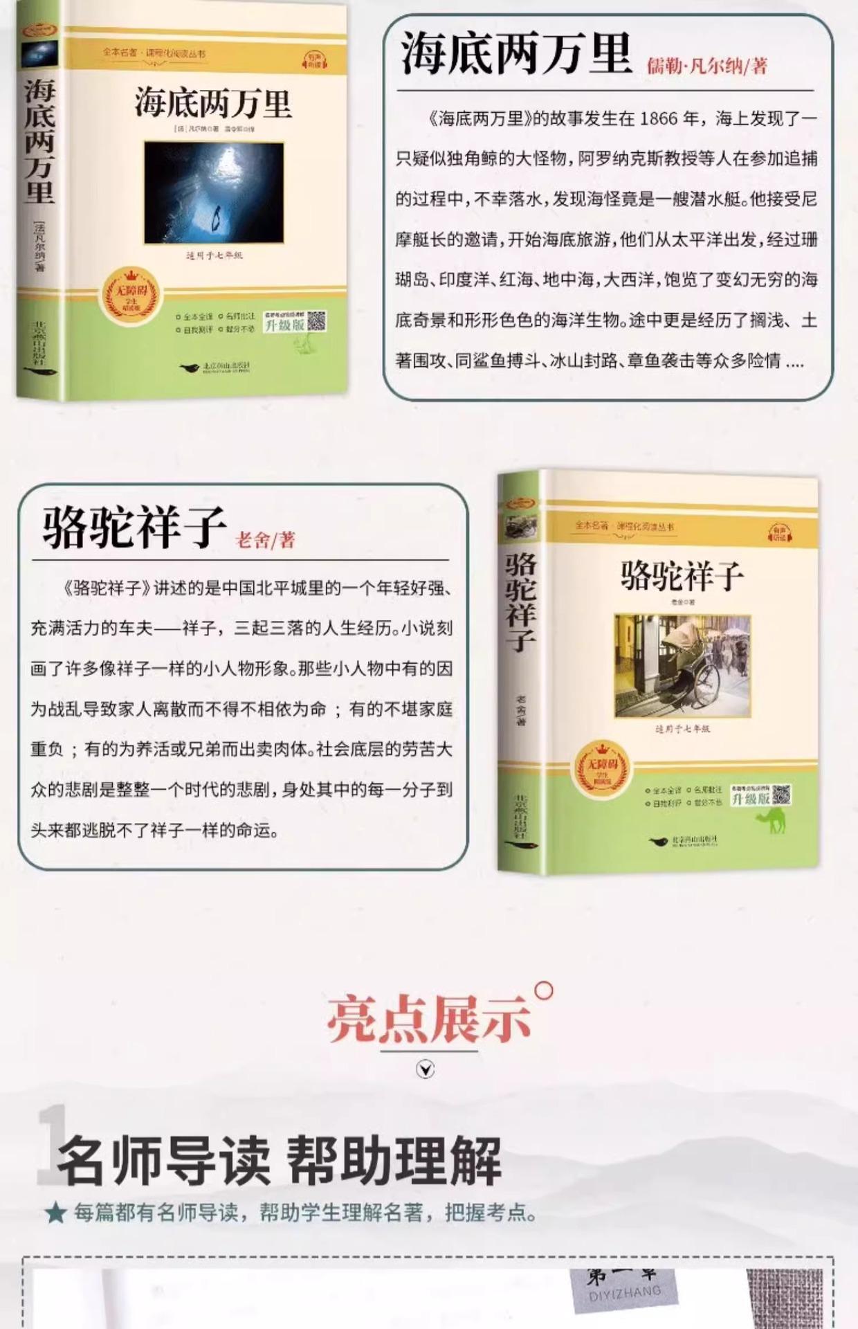 Camel Xiangzi (for Grade 7), Twenty thousand miles under the sea (for seventh grade)