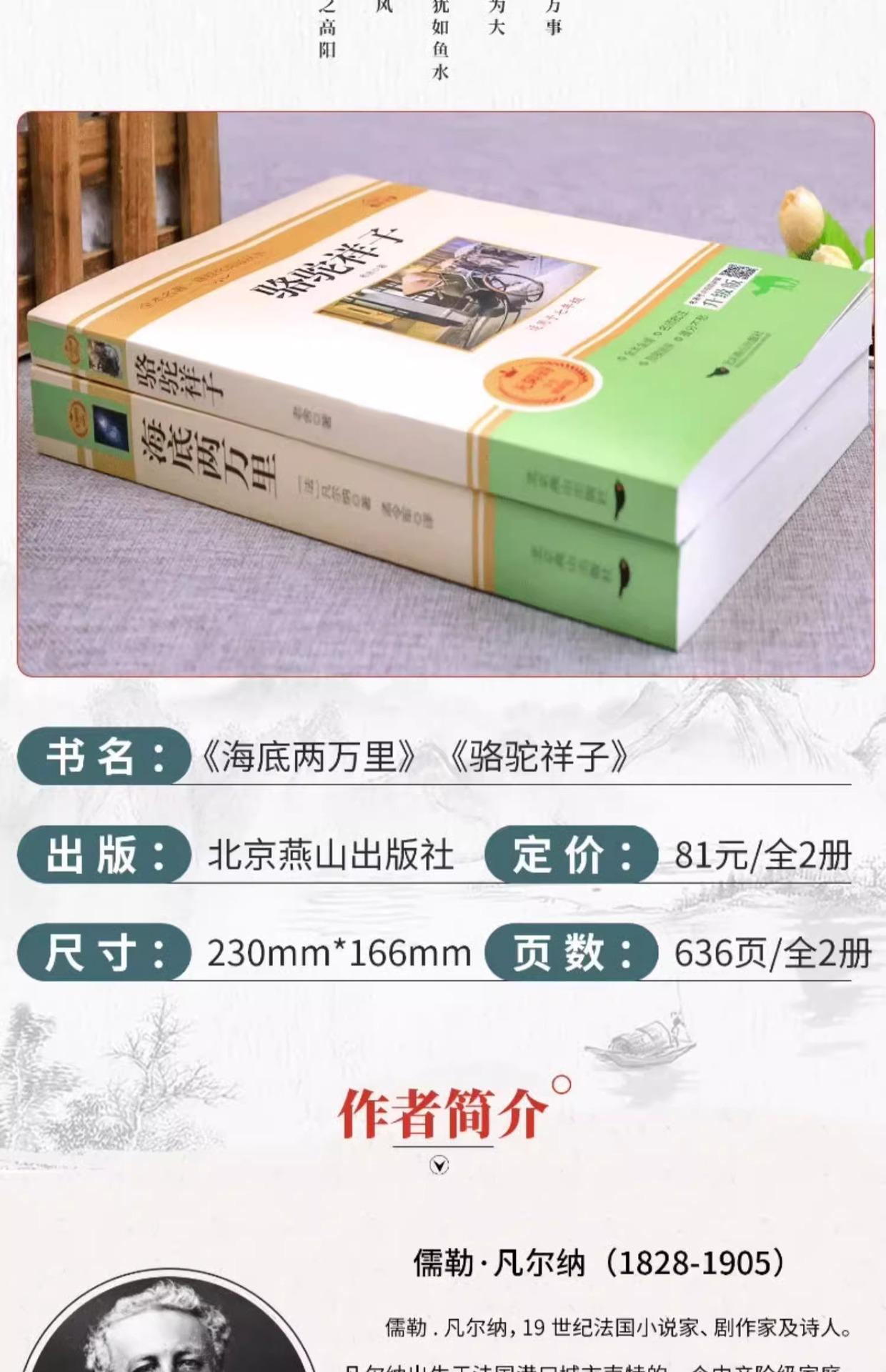 O fundo do mar 20.000 milhas e camelo Xiangzi conjunto completo de 2 volumes sétima série segundo volume deve ler o livro original genuíno Lao ela escola secundária