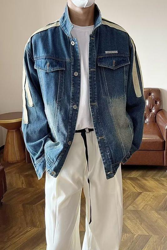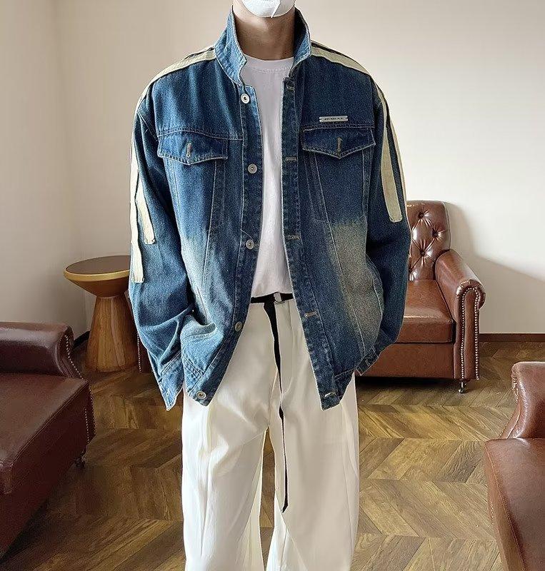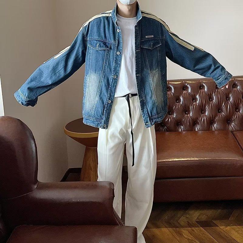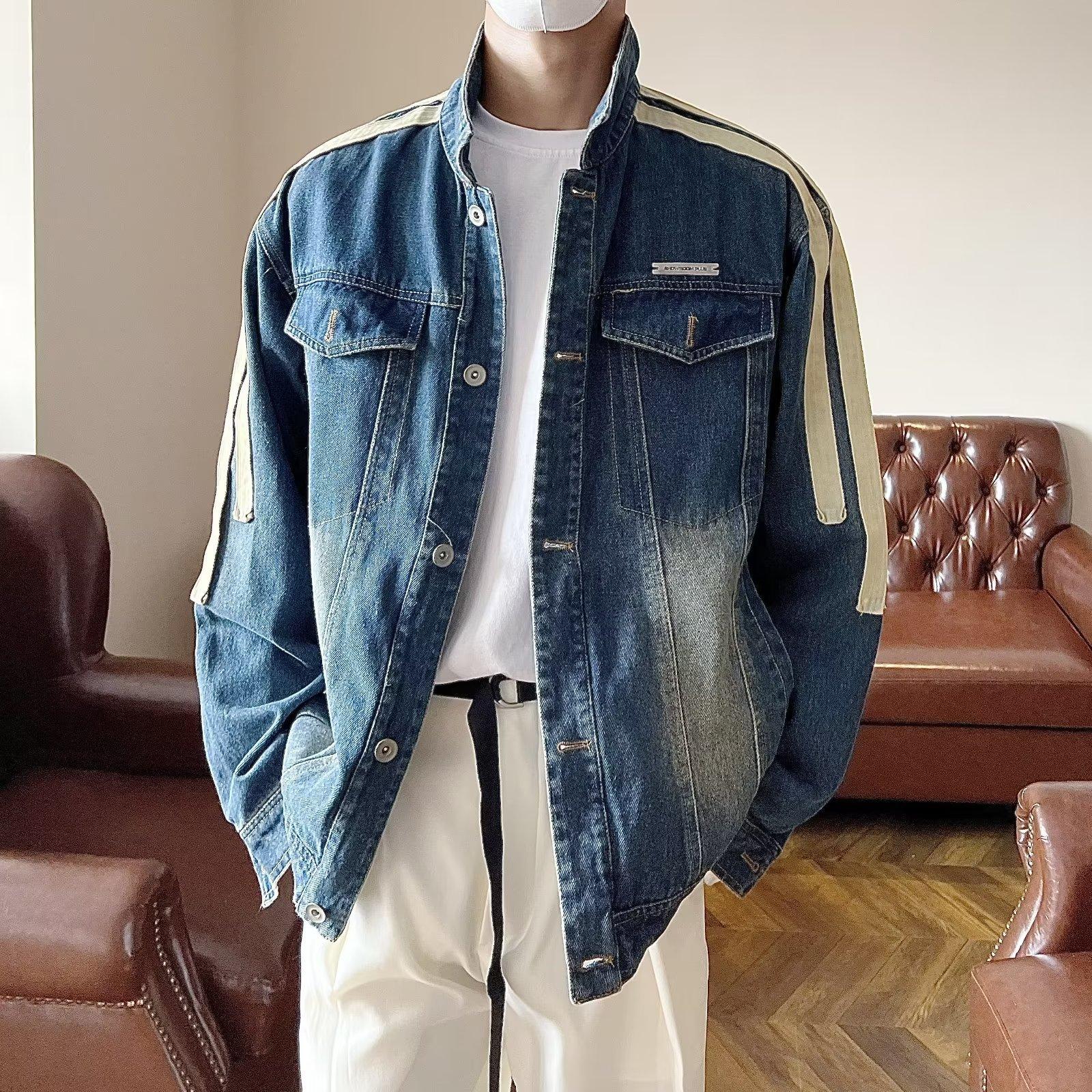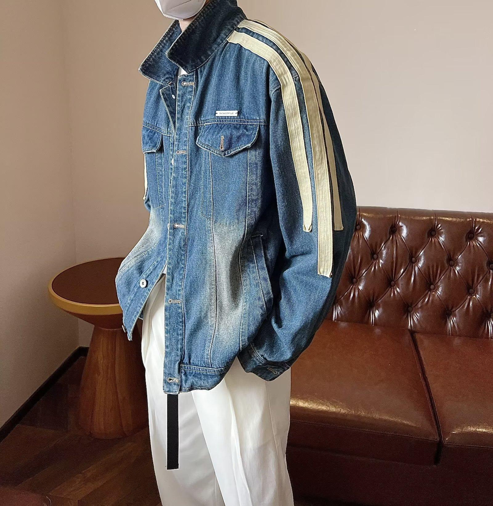 Primavera e Outono rua frita Denim coat masculino Novo loose plus size versátil nicho design jaqueta lavada top