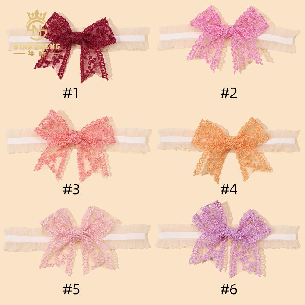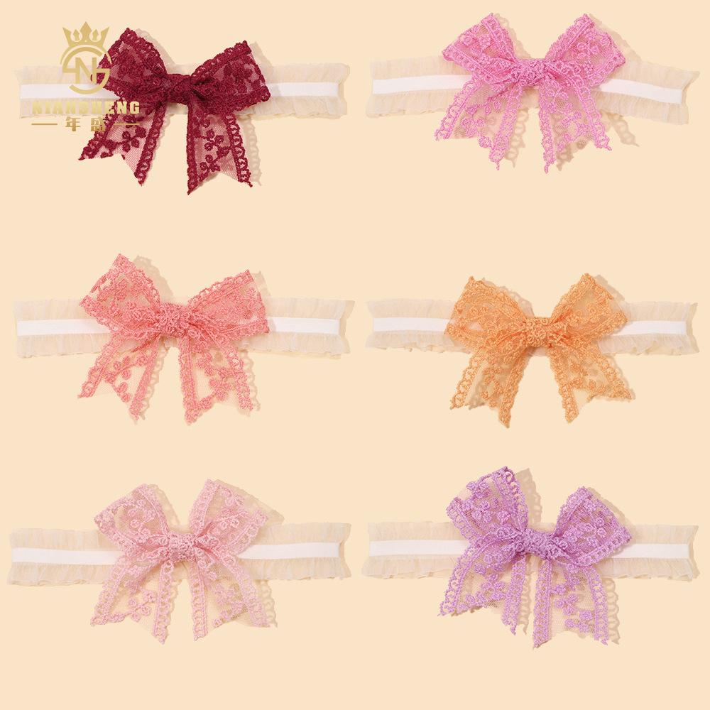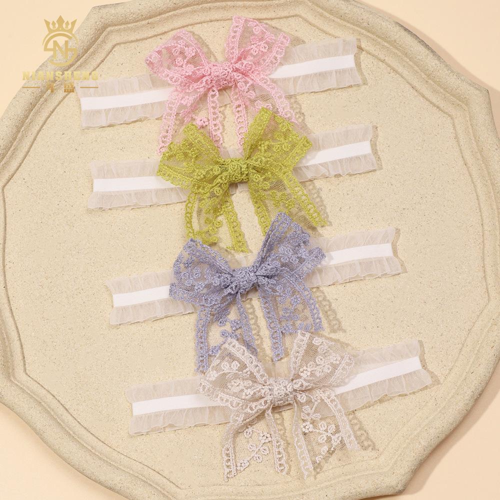 Faixa de cabelo para bebê estilo coreano, malha de renda bordada, laço macio e confortável, acessórios infantis, acessórios fofos para cabelo de princesa