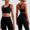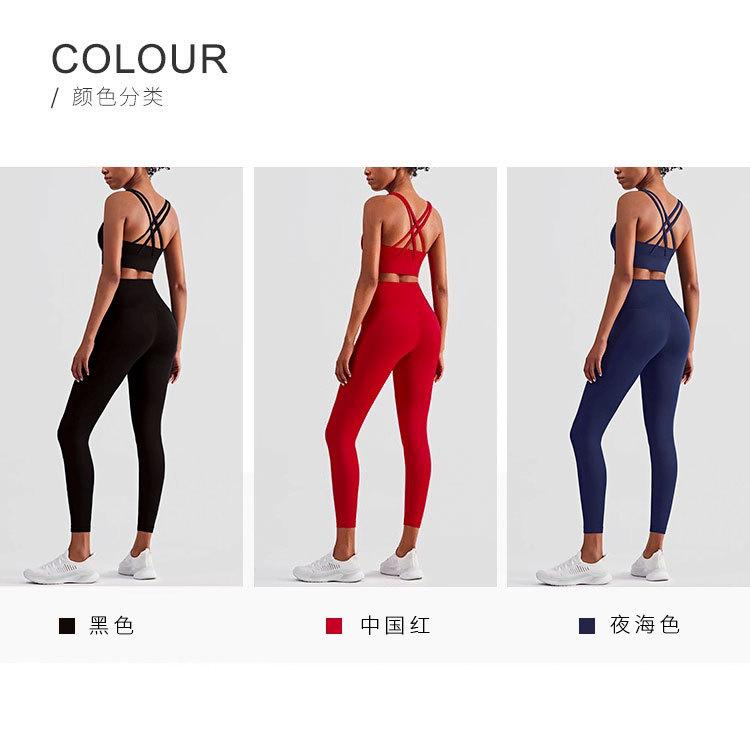 Terno de ioga de duas peças, sutiã sexy com costas cruzadas, calças de ioga europeias e americanas de cintura alta e quadril, roupa de ioga