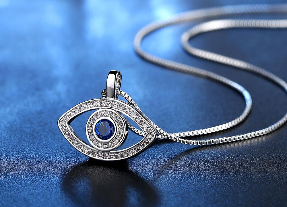 Nome do Produto:Colar Olhos Azuis da SorteColar (corrente de caixa)