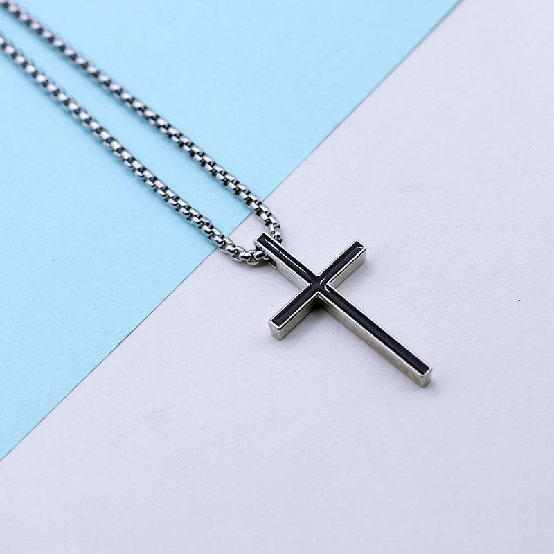 Colar de Cruz Retrô Europeu e Americano Transfronteiriço com Pingente de Cruz Simples Personalizado Longo Acessórios Corrente