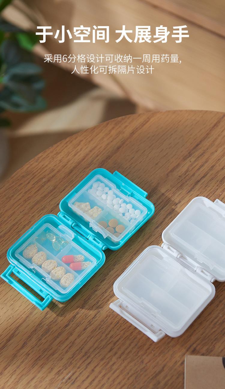 Mini saco portátil de armazenamento pequena caixa de medicamento 6 compartimento uma semana caixa de medicamento fivela selada à prova de umidade caixa de medicamento portátil à prova de umidade