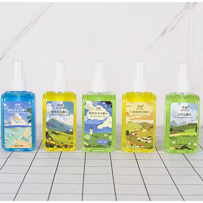 Xiyin Frasco Quadrado Pequeno Água Floral 80ml À Base de Plantas Hortelã Refrescante Artemísia Fel de Cobra Líquido Repelente de Mosquitos