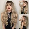 Europeia e americana popular marrom dourado peruca cabeça capa gradiente cor peruca longo cabelo cacheado moda Camadas franja Perucas