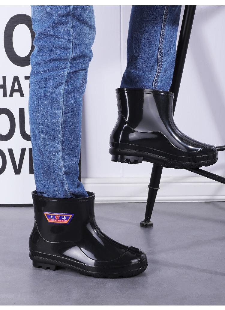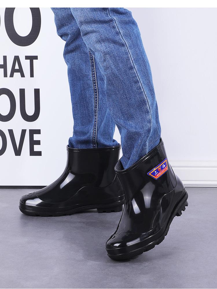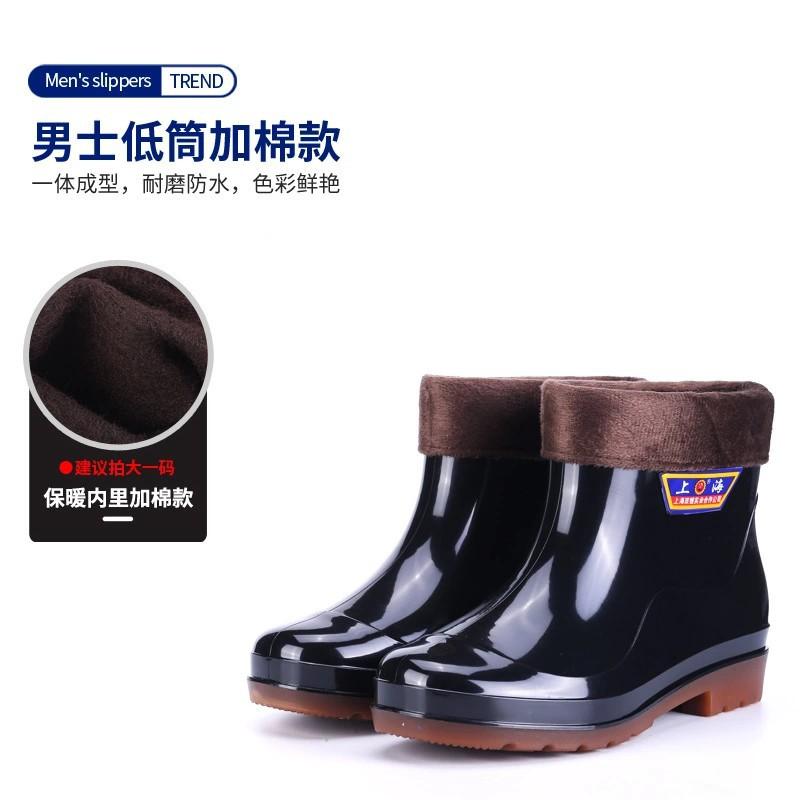 Sapatos de chuva impermeáveis de tubo curto masculinos, sapatos de chuva para canteiros de obras, sapatos de água antiderrapantes para cozinha, sapatos de primavera e outono, sapatos de borracha, botas aquáticas, sapatos quentes