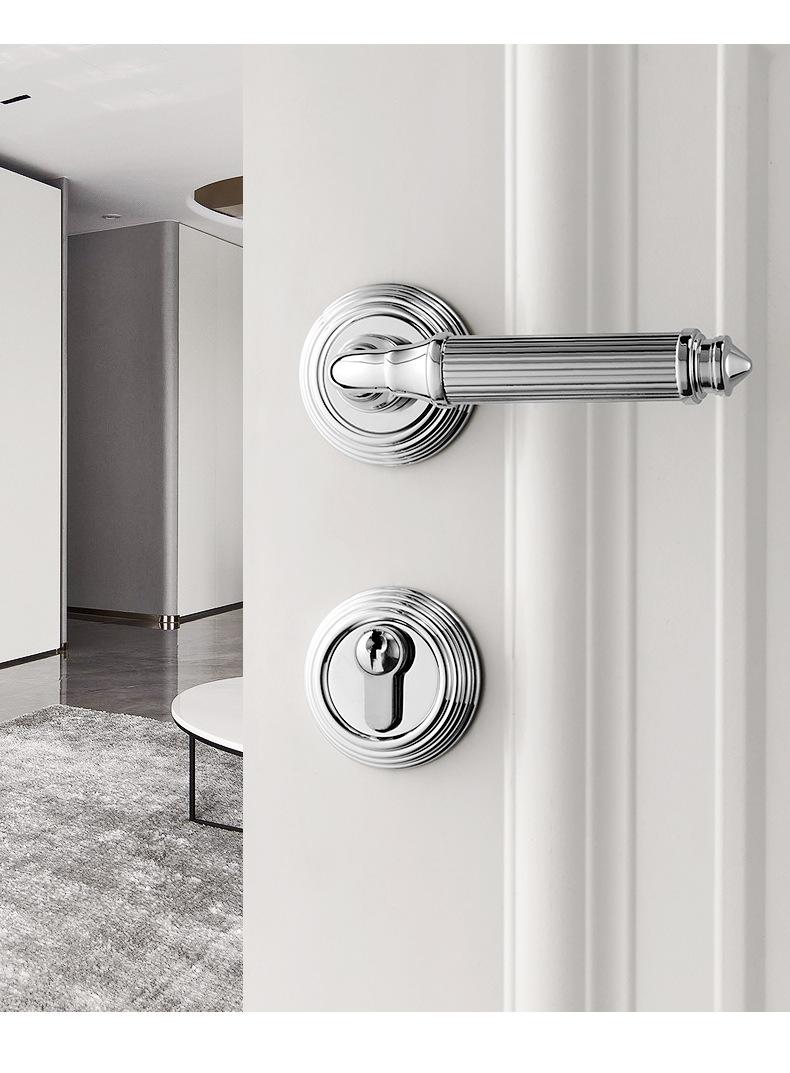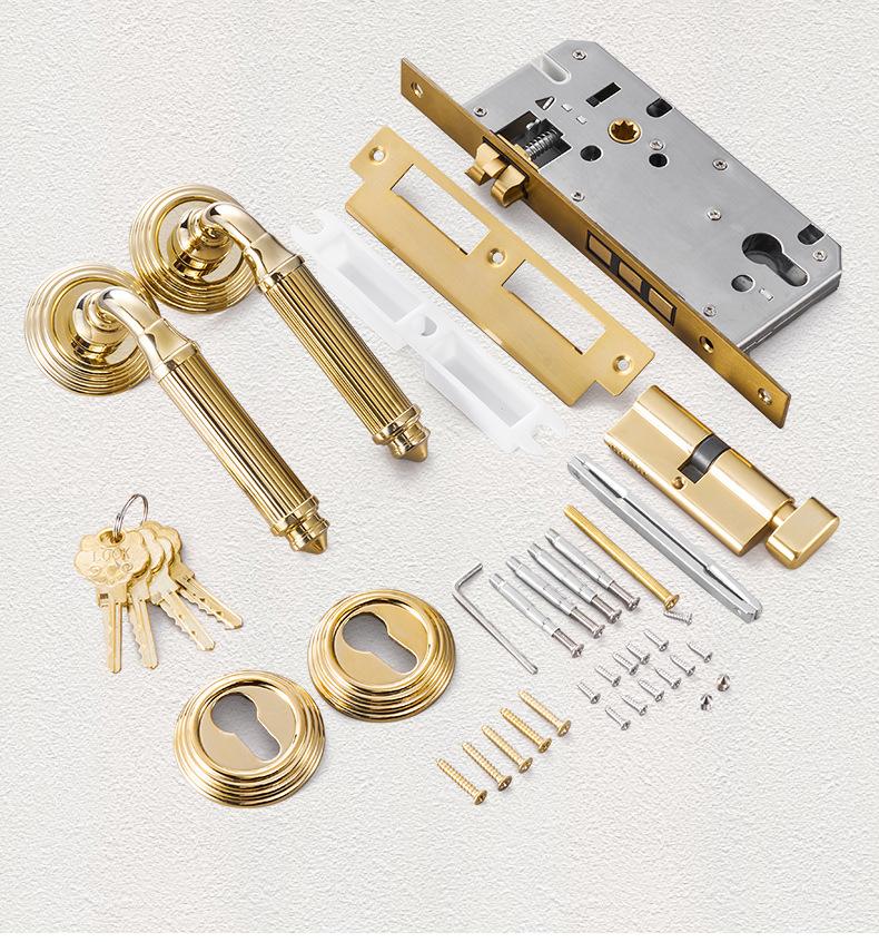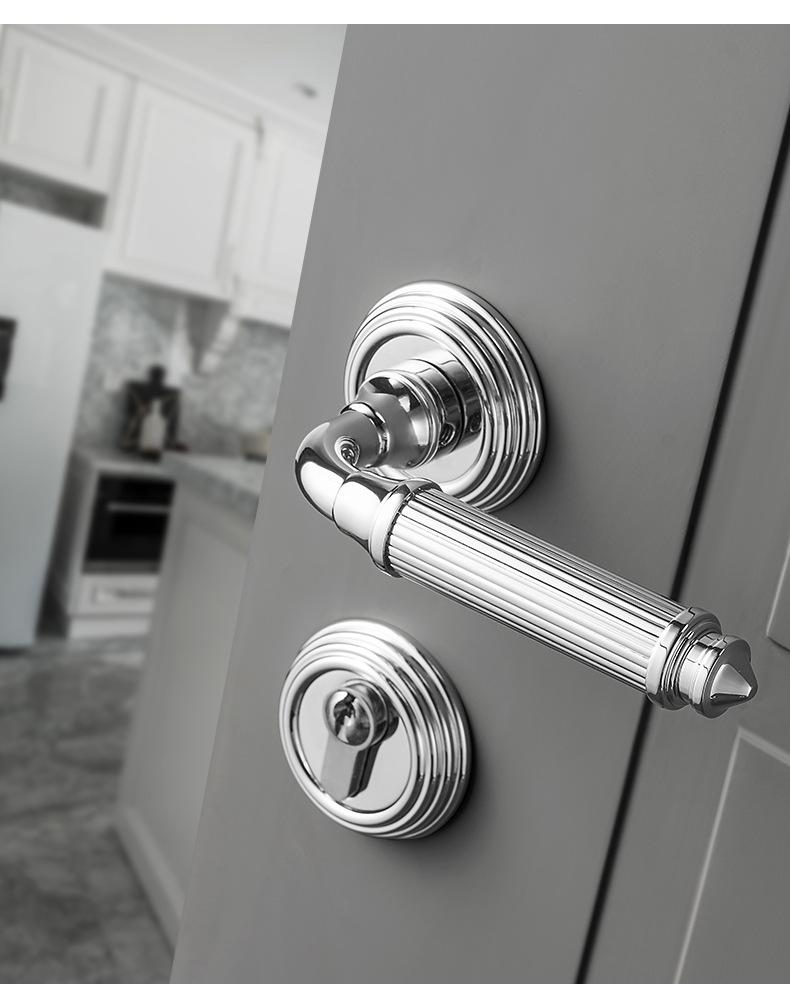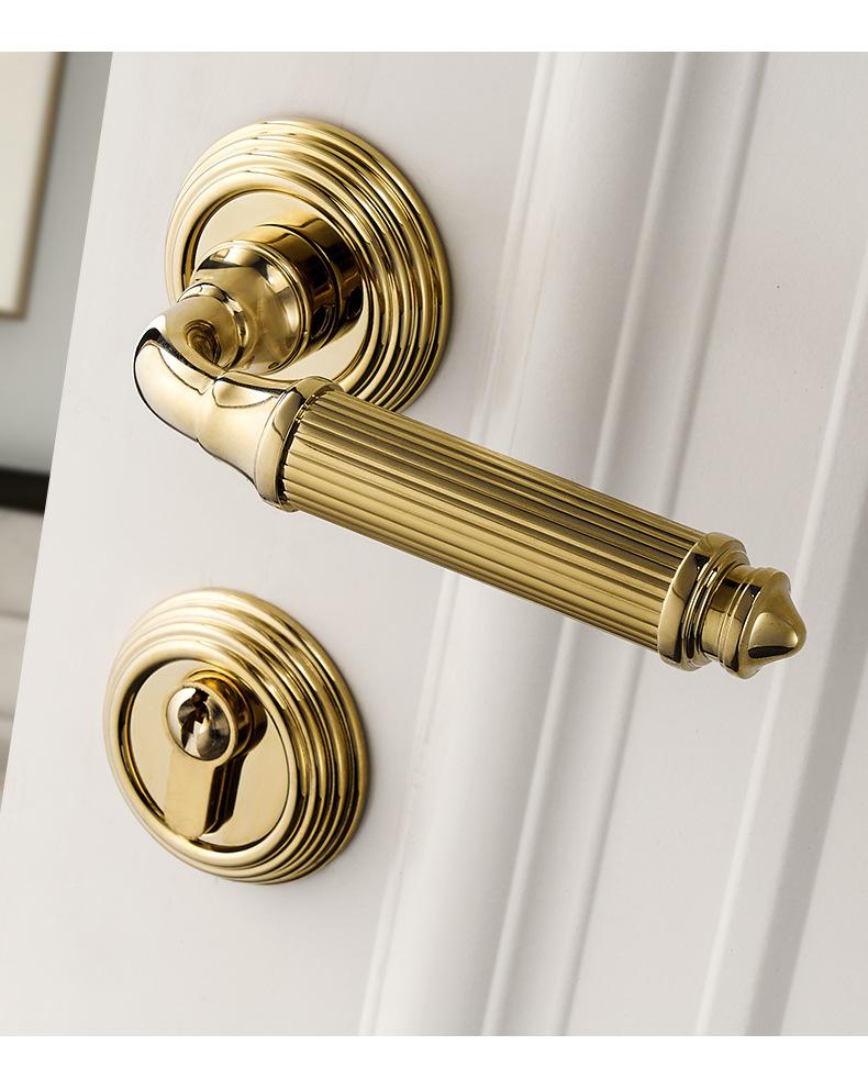 Fechadura de Porta de Quarto Toda em Cobre Interna Silenciosa Magnética Latão Francês Prata Ouro Conjunto de Fechadura de Porta Maçaneta para Porta de Madeira Maciça