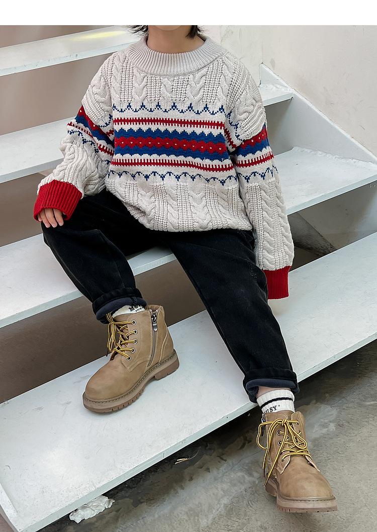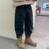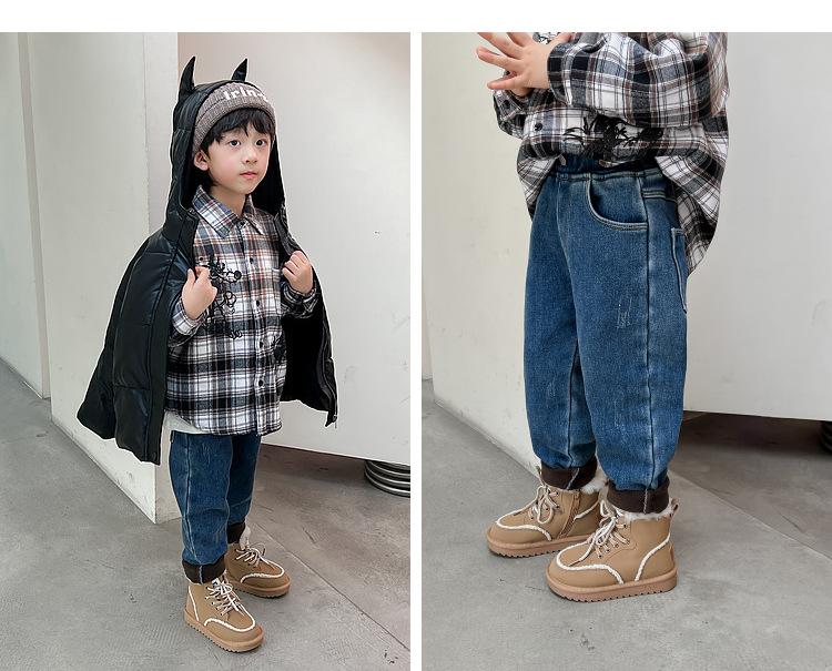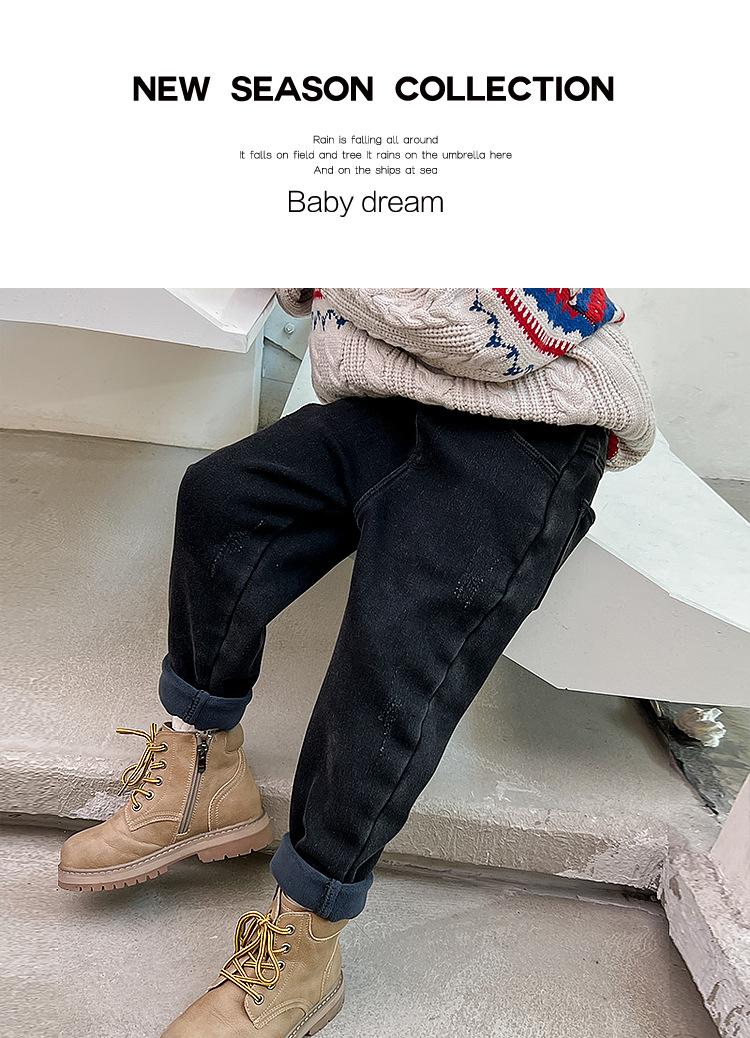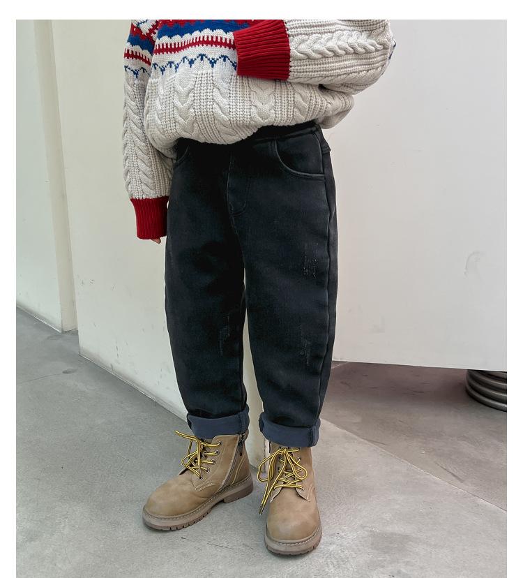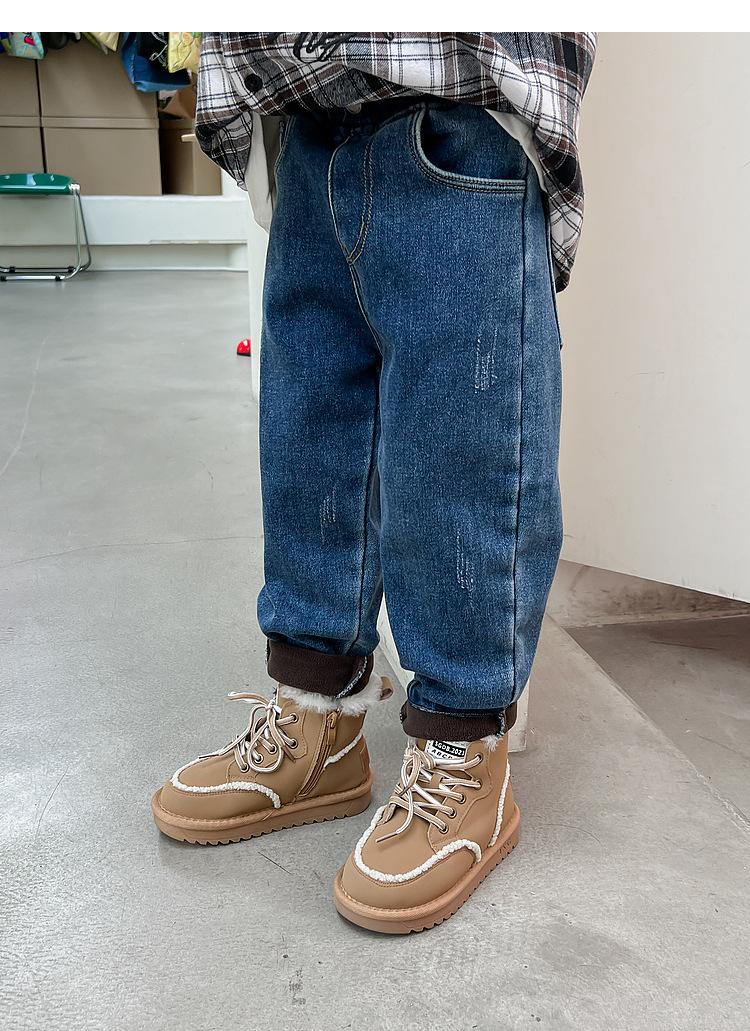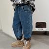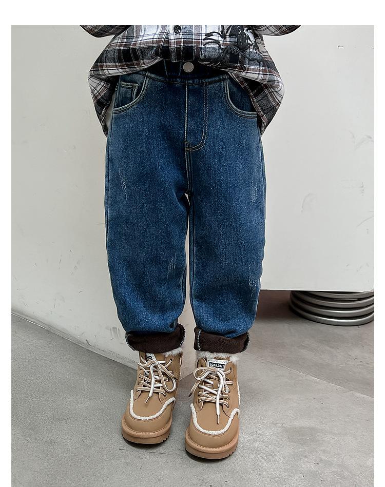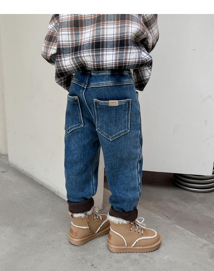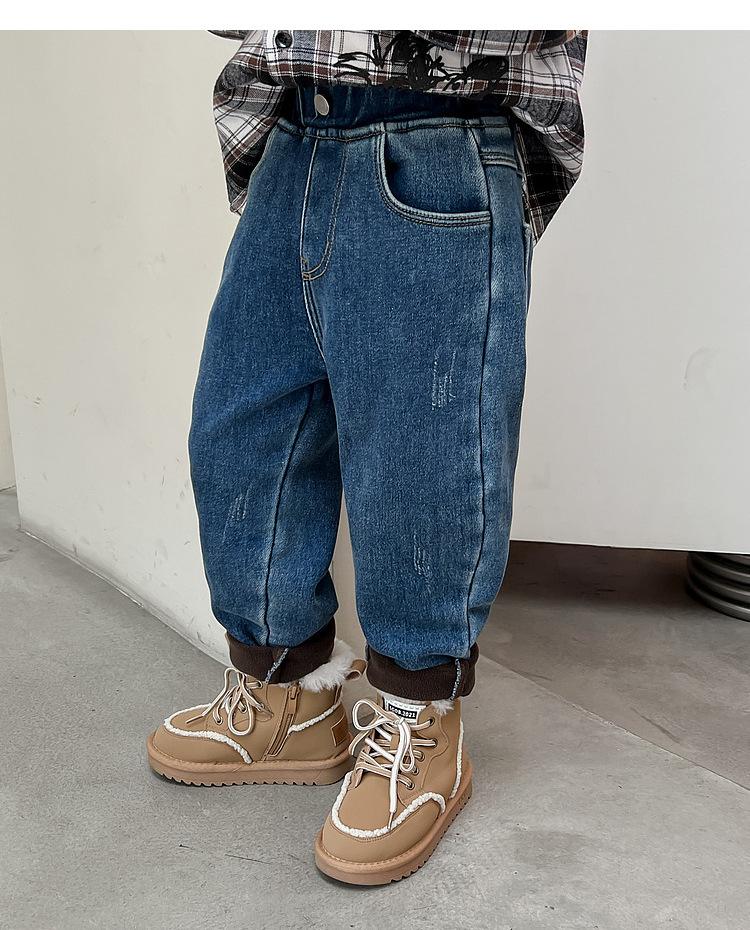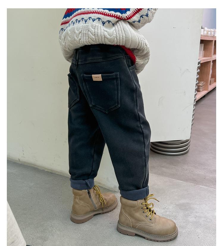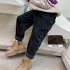 Calça jeans forrada de lã para meninos 2023 Inverno Infantil médio e grande infantil solto engrossado uma peça veludo lápis calças meninos