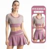 Color-matching Outer Wear High Elastic Band Chest Mat Yoga Suit Fake de duas peças de manga curta T-shirt Naked Sense Anti-running Light Sports Skirt Set