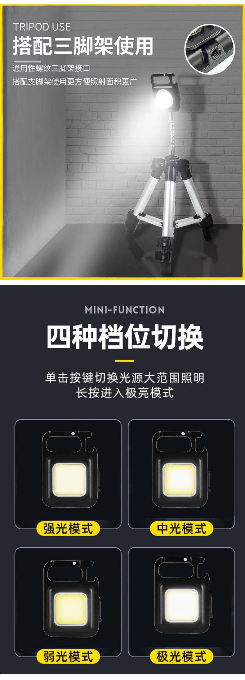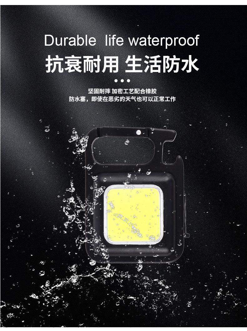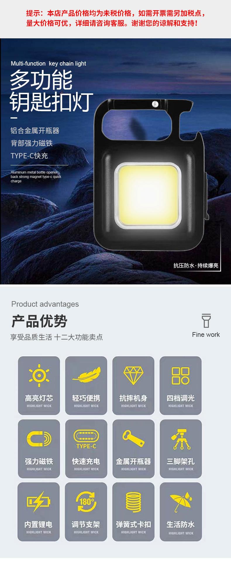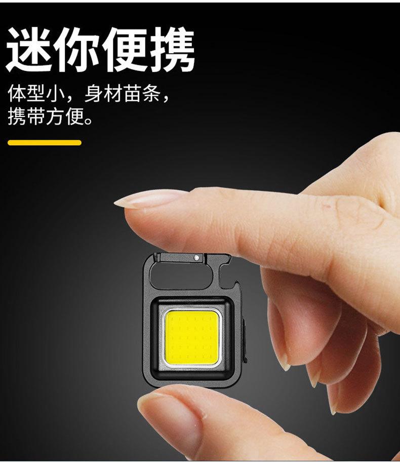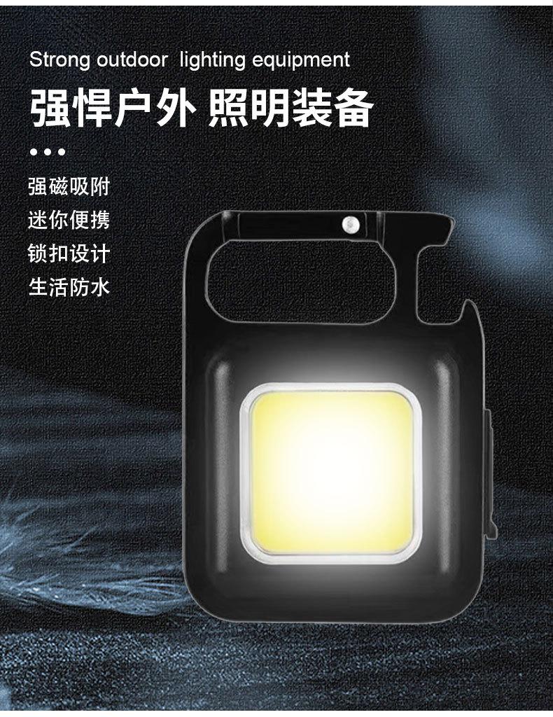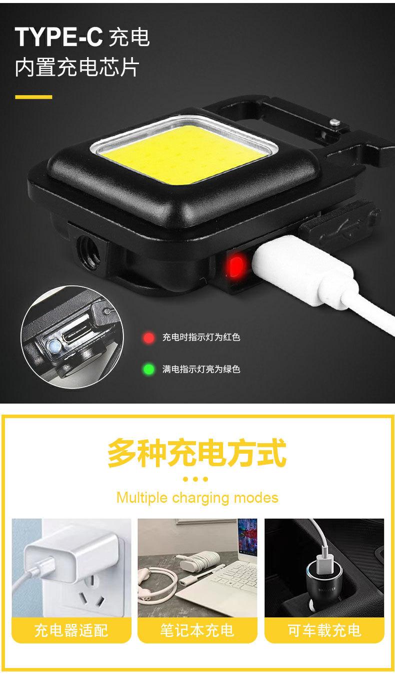 Novo multifuncional portátil COB mini chaveiro luz recarregável luz de trabalho ao ar livre lanterna brilhante cross-border