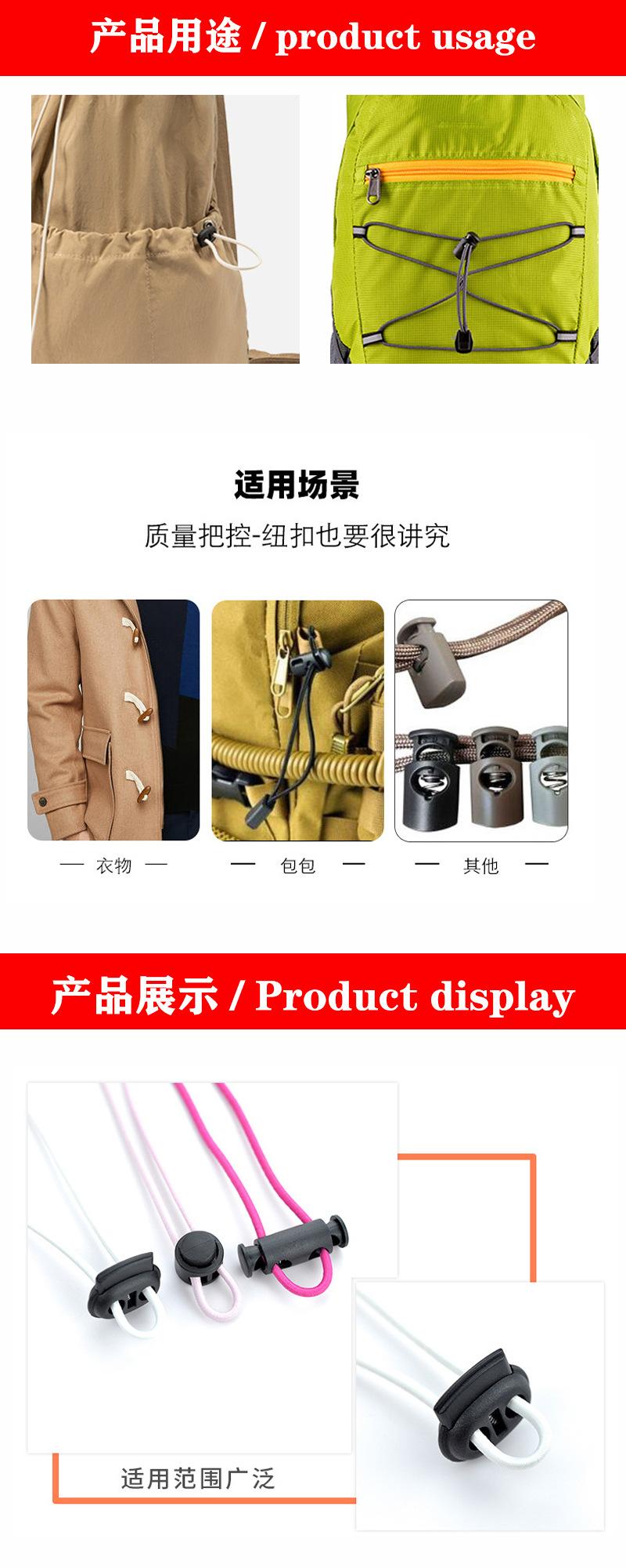 Fivela de Mola de Plástico do Fabricante, Fivela Elástica de Ajuste para Bagagem, Fivela de Furo Único para Pressão de Roupa, Acessórios Prontos