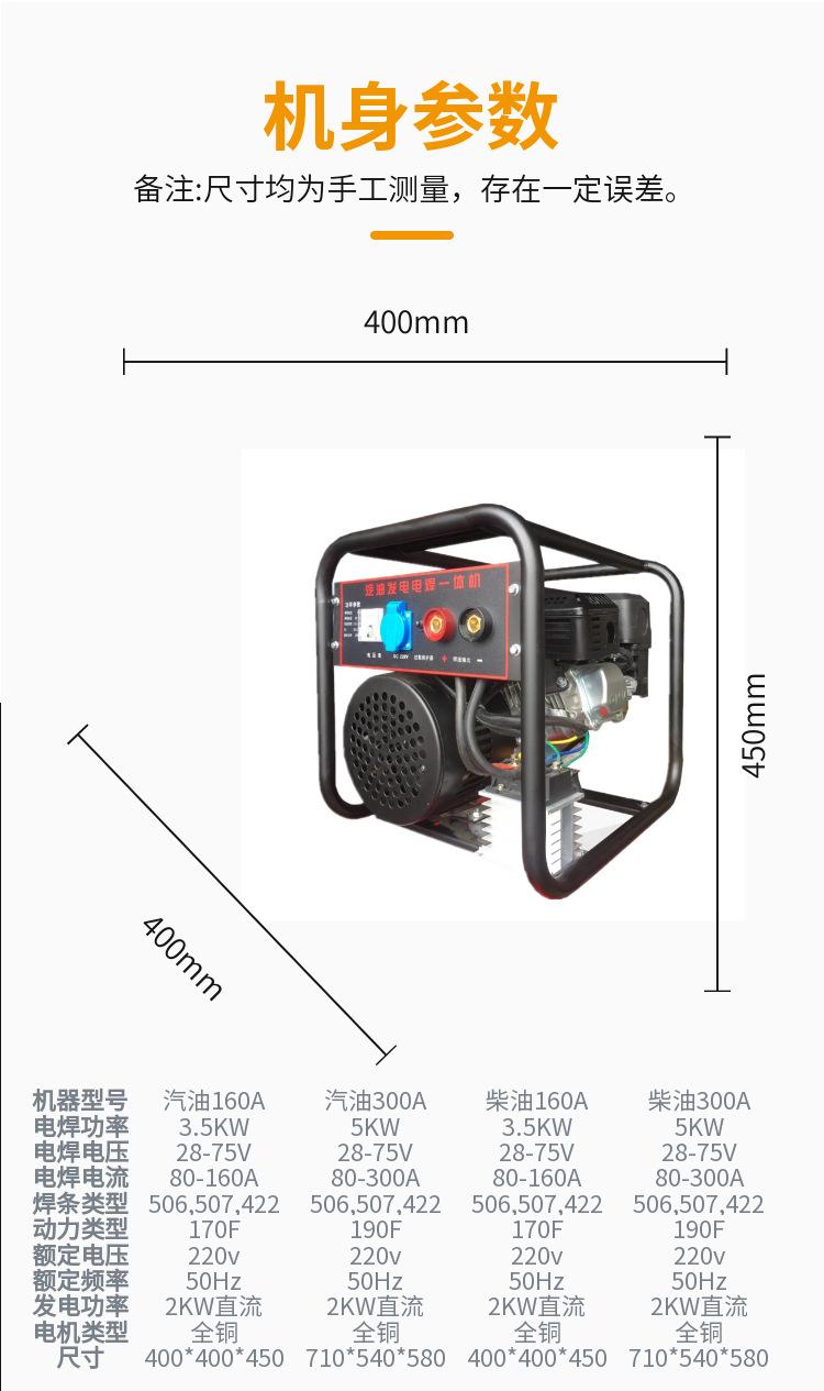 Uniforme de soldagem durável diesel 300A auto-gerador elétrico estrutura da máquina de solda móvel ao ar livre