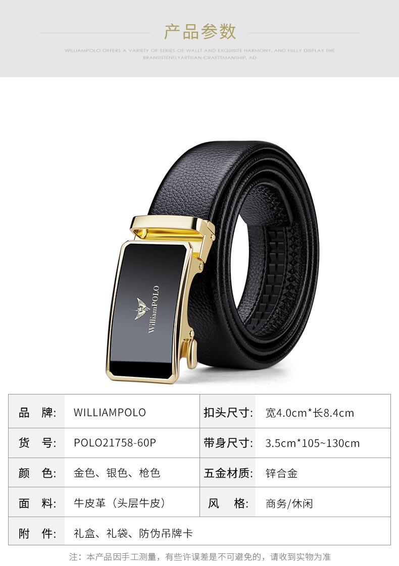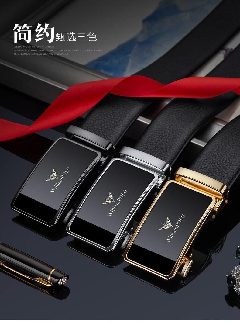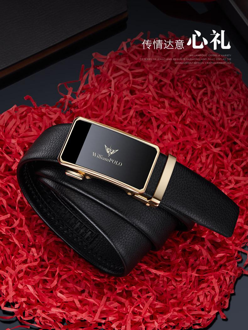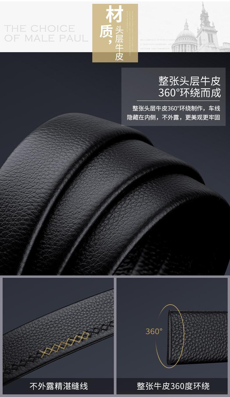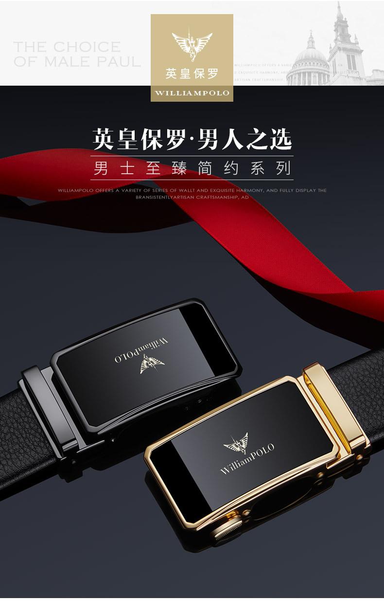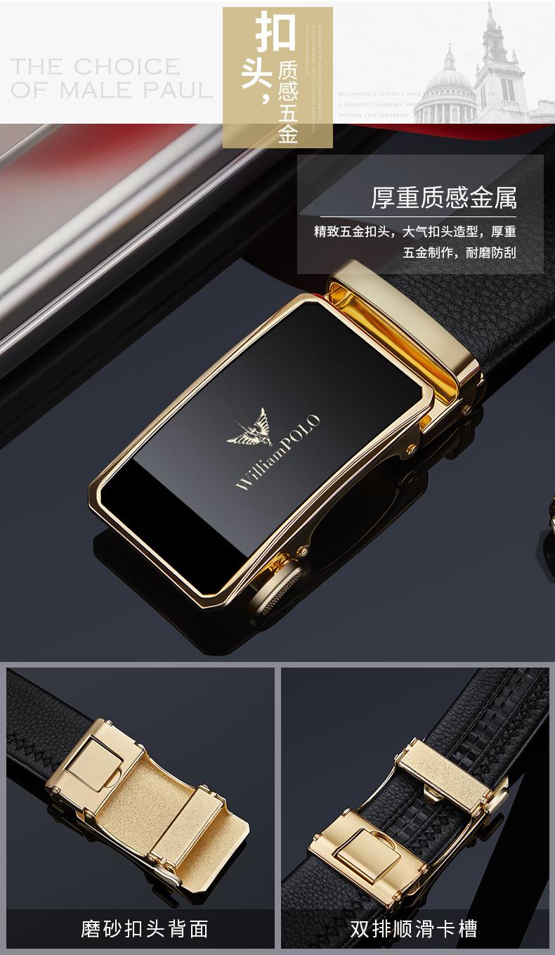 Cinto de couro casual masculino King Paul All-match, de couro bovino, com fivela automática, para negócios