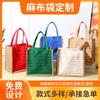 Bolsa de Linho Preta Atacado Logotipo Estampado Linho Algodão Linho Juta Bolsa de Mão Grande Capacidade Sacola Tote Muji