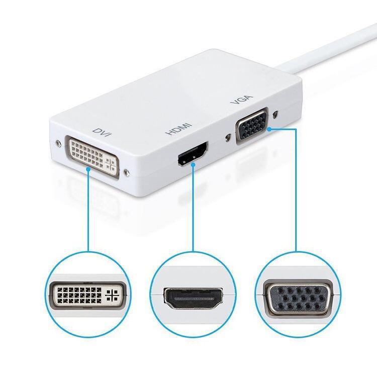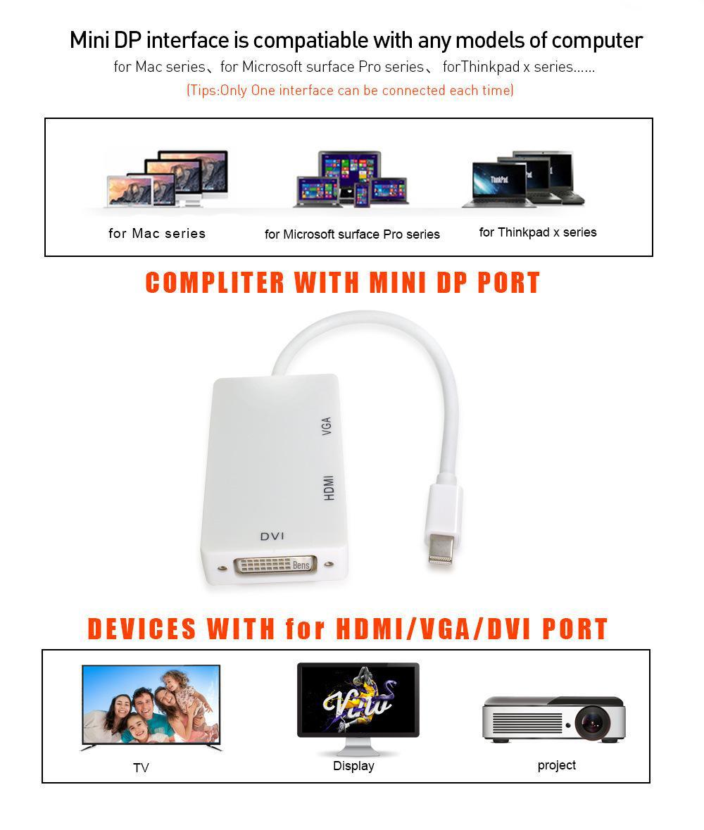 Thunderbolt Mini DP para VGA HDMI DVI Mini DP 1080p conversor três em um DisplayPort