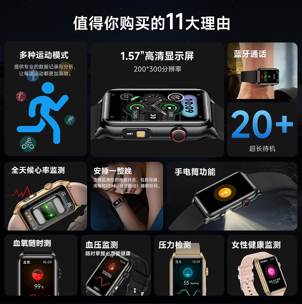 Novo Smartwatch Transfronteiriço G50 Lanterna Chamada Bluetooth Frequência Cardíaca Pressão Arterial Oxigênio no Sangue Sono Despertador
