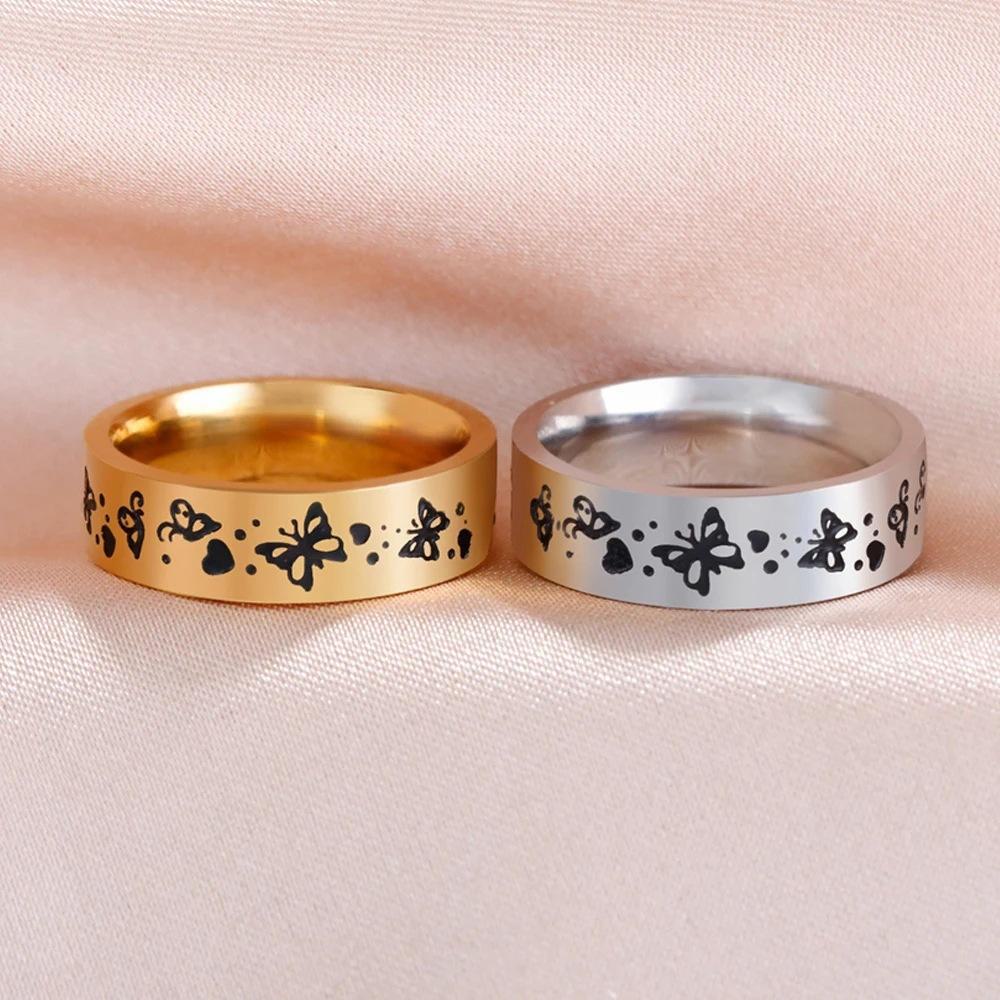 Anel Aço Titânio Corte Padrão Borboleta Preta Mais Vendido 6mm Largura Personalizado Fashion Aço Inoxidável para Homens e Mulheres