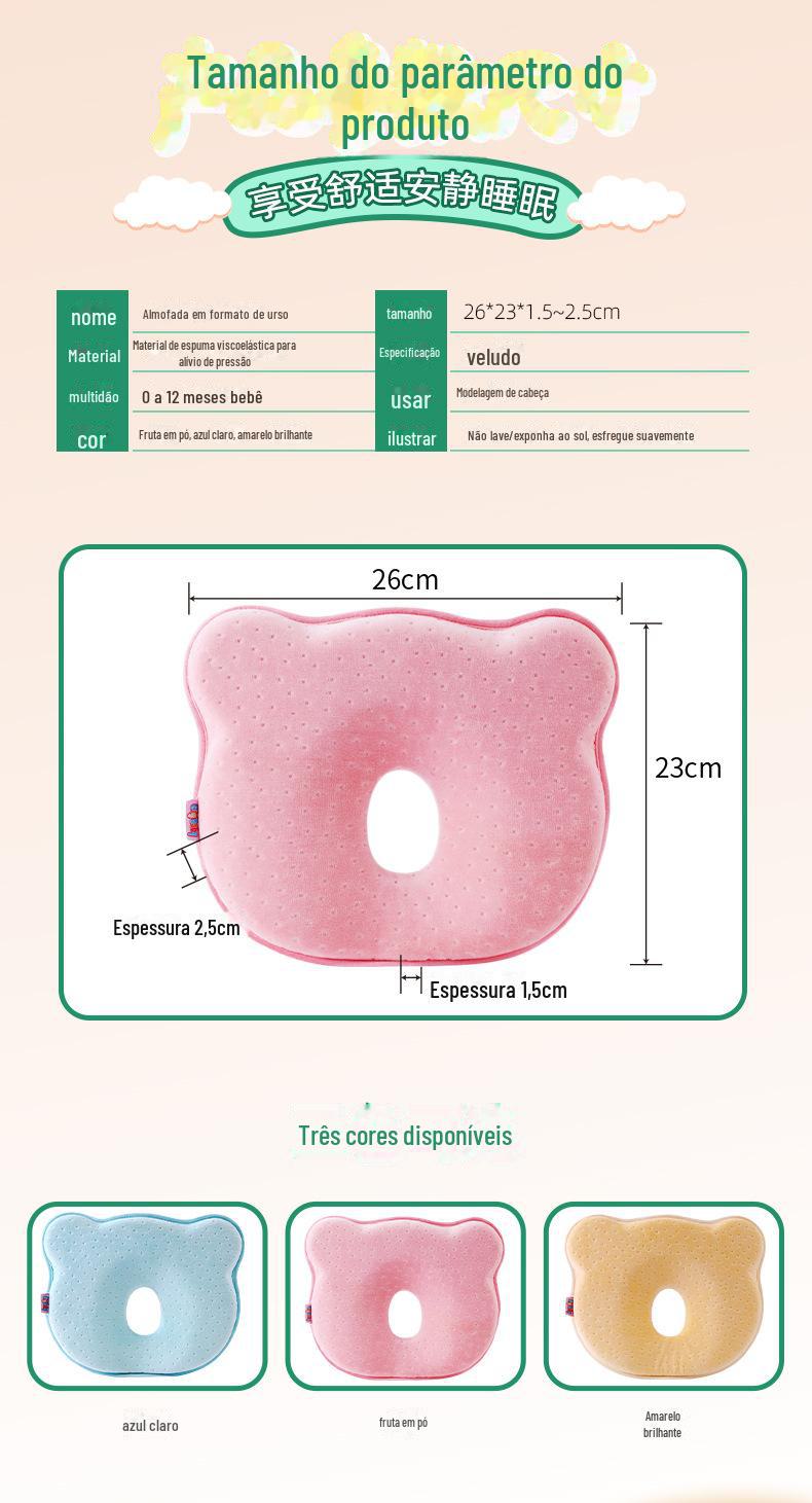 Travesseiro de estilo para bebês da Amazon, anti-cabeça chata, correção de recuperação lenta, travesseiro de espuma viscoelástica respirável para recém-nascidos