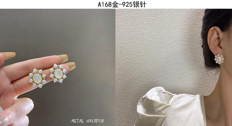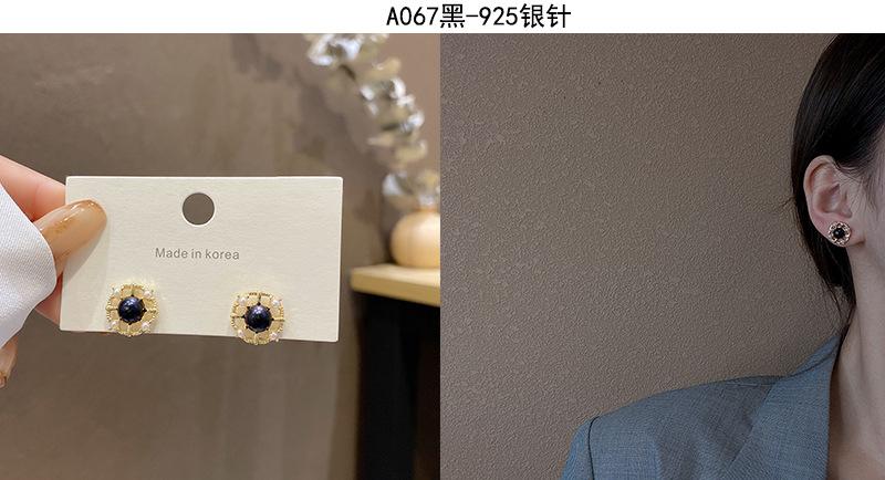 S925 prata agulha zircão pérola conjunto série brincos para mulher, high-end, nicho, simples, brincos de uma semana, brincos atacado