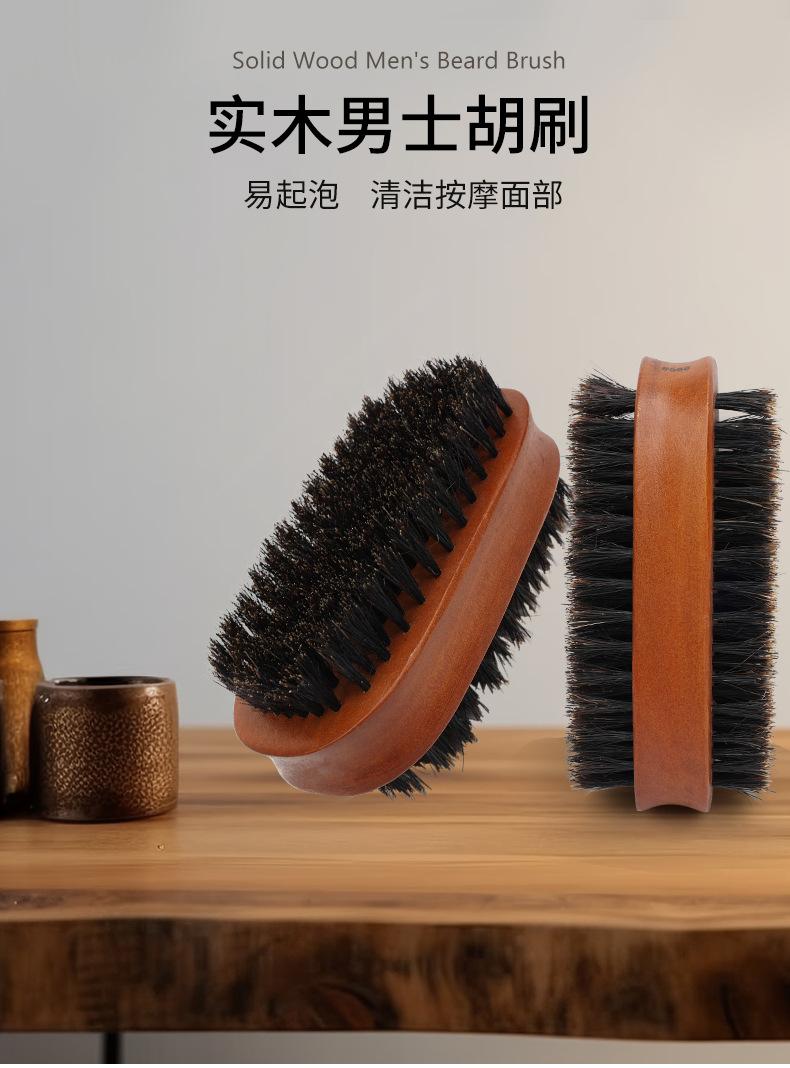 Escova de Barba Transfronteiriça Escova de Cerdas Dupla Face Escova de Barba Masculina Pente de Barba para Limpeza e Estilização Personalizada Fabricante Atacado
