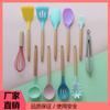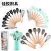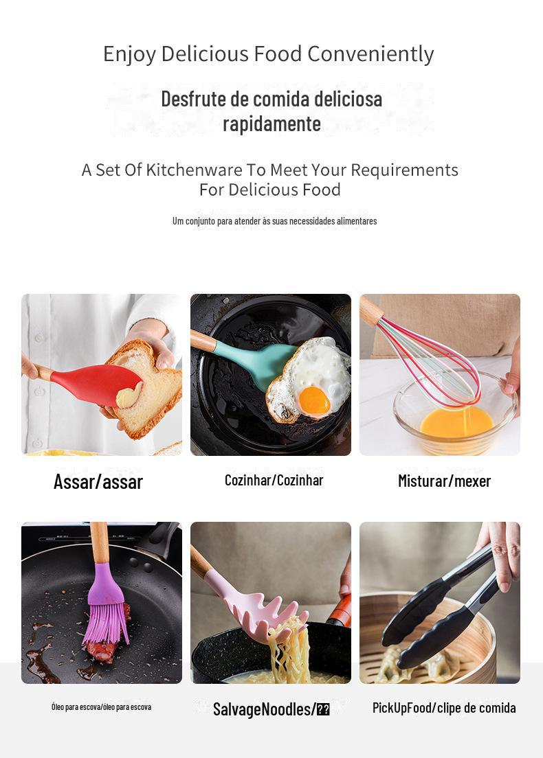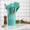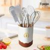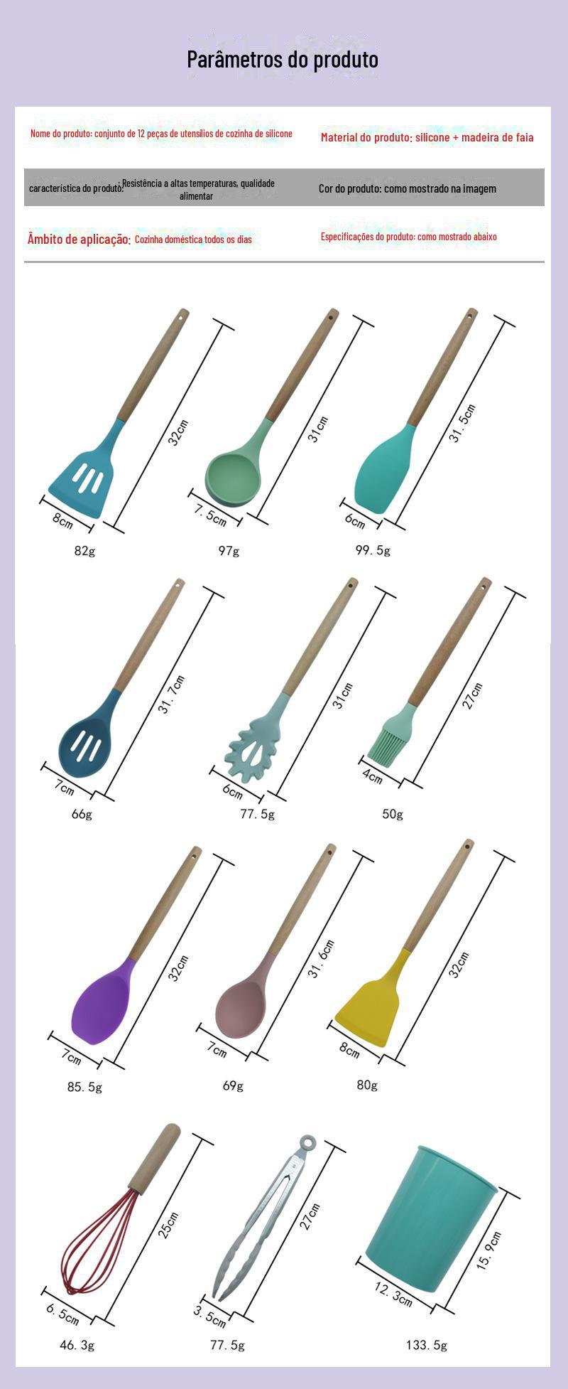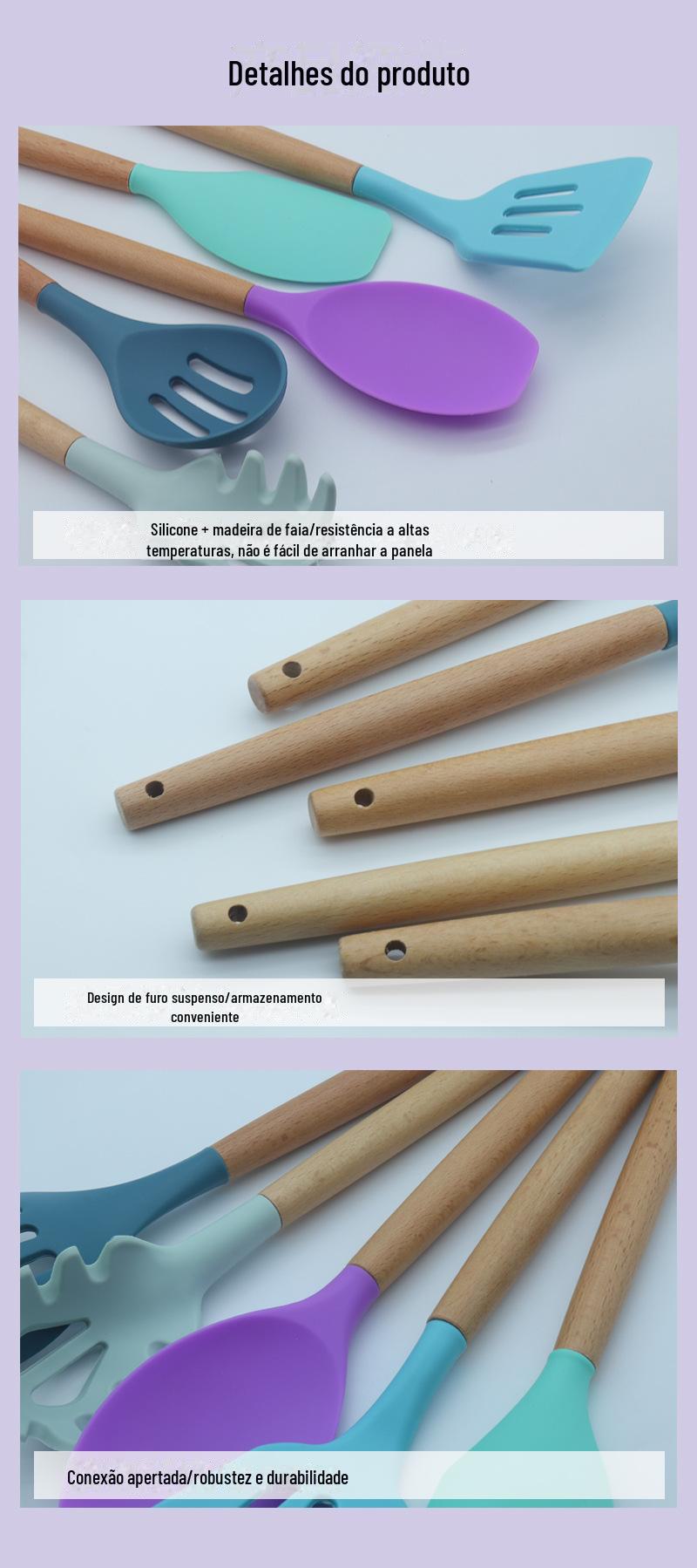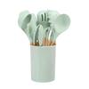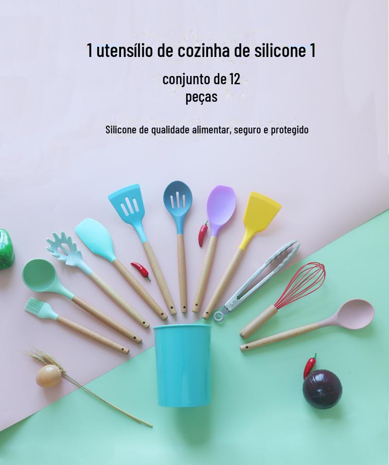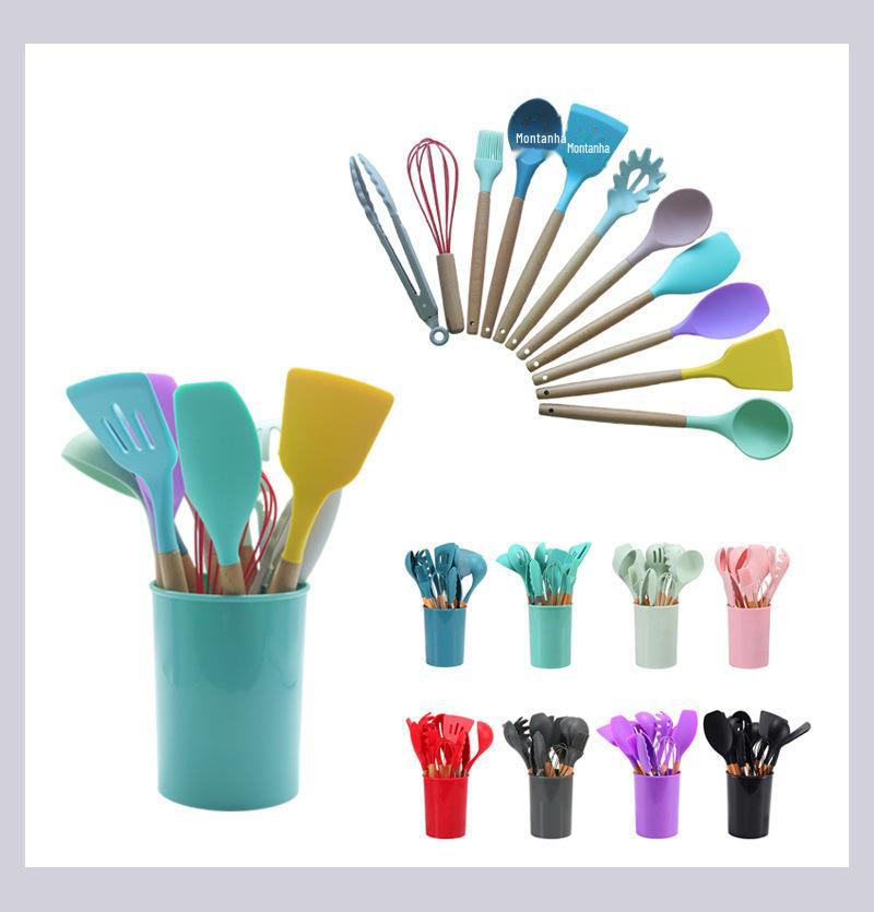 Espátula de cozinha de faia de 12 peças com cabo de madeira de silicone terno de utensílios de cozinha com balde de armazenamento utensílios de cozinha