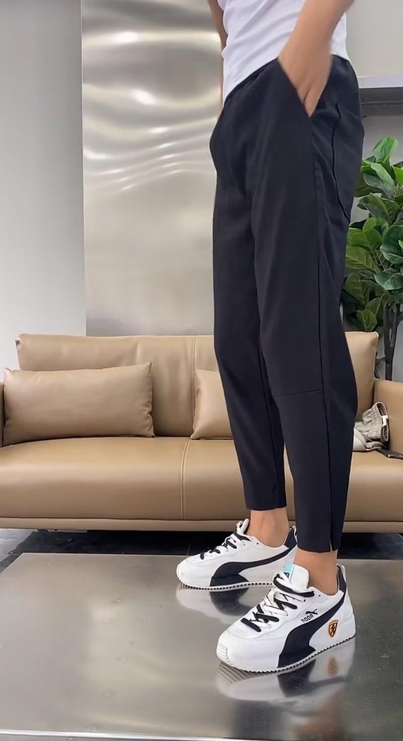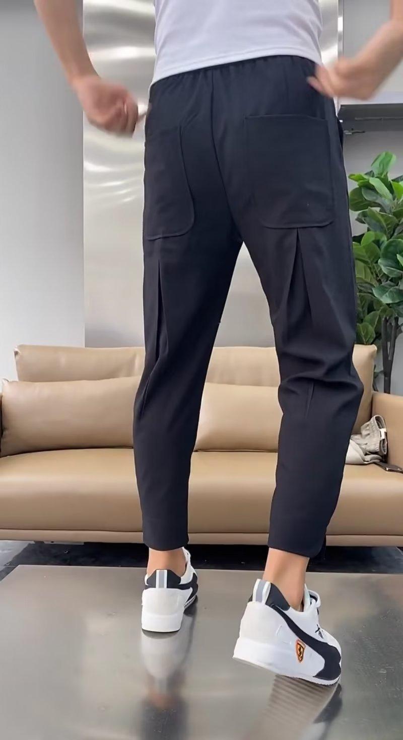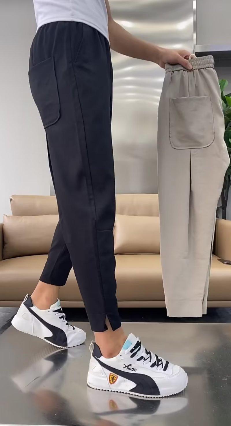 Calças de verão finas de seda gelada masculinas, casuais, esportivas, slim fit, cortadas, calças de moletom para todos os tipos de uso