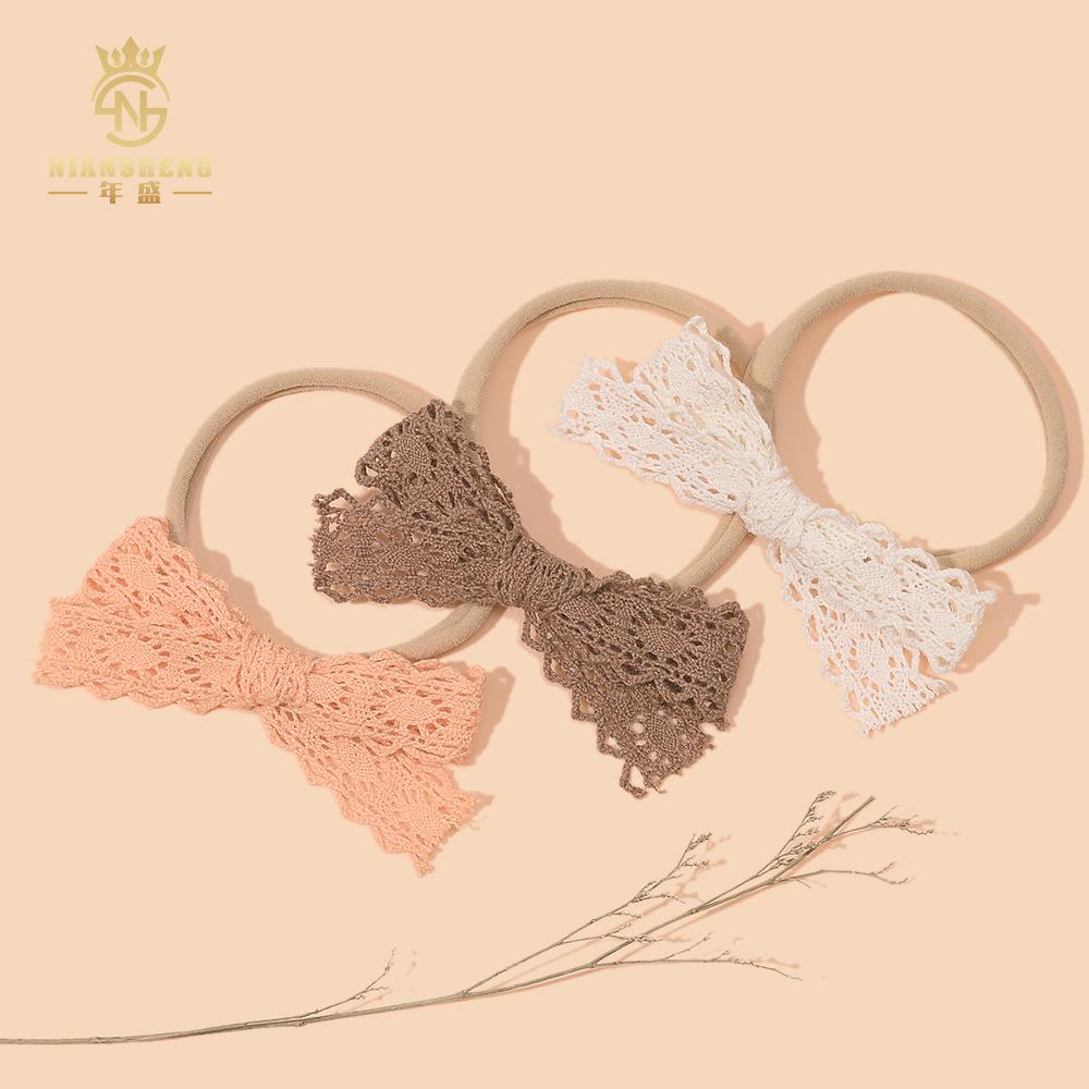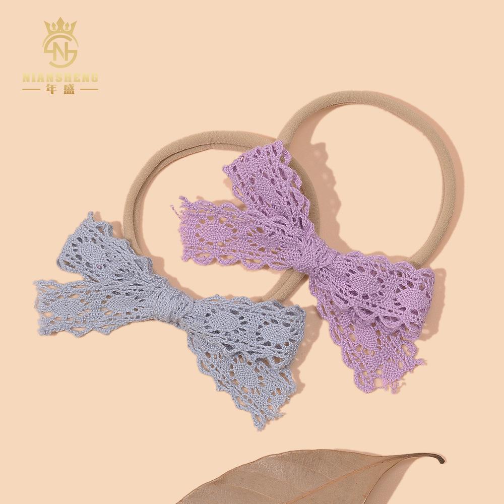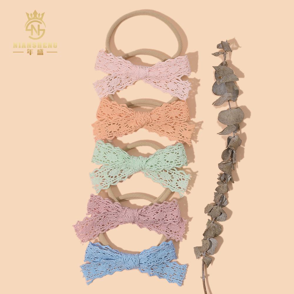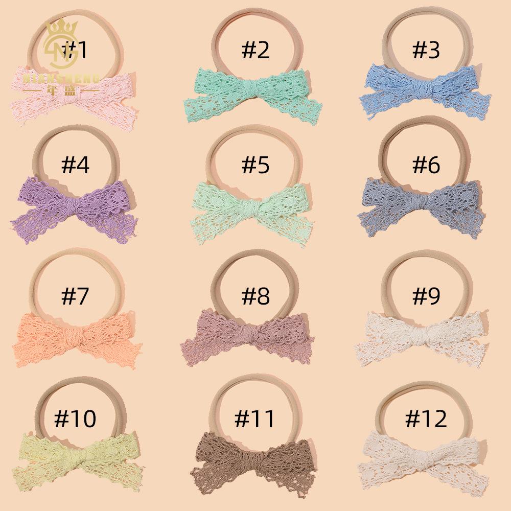 Cross-border Novo Baby Candy Color Hollow-out Acessórios de Cabelo Lace Bow Children's Headband Baby Stretch Nylon Hair Band