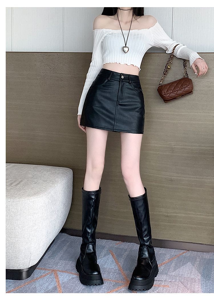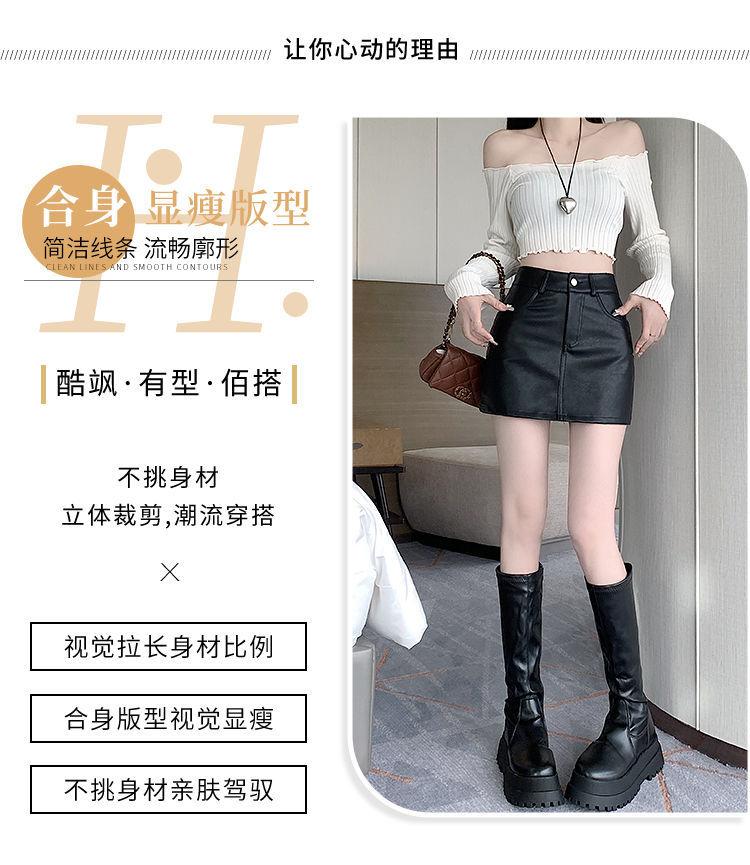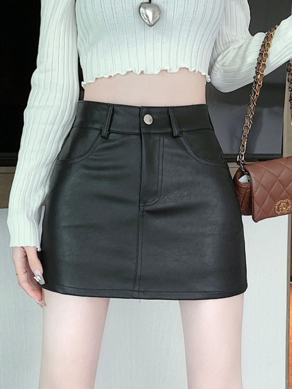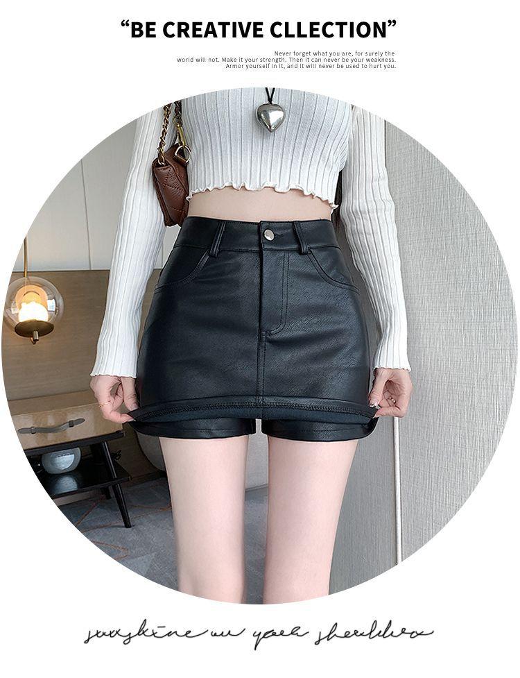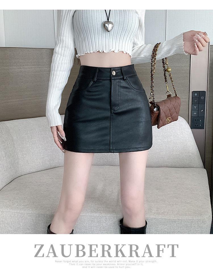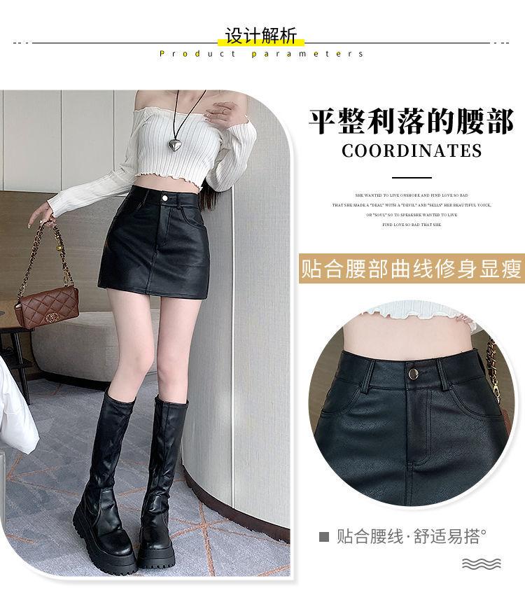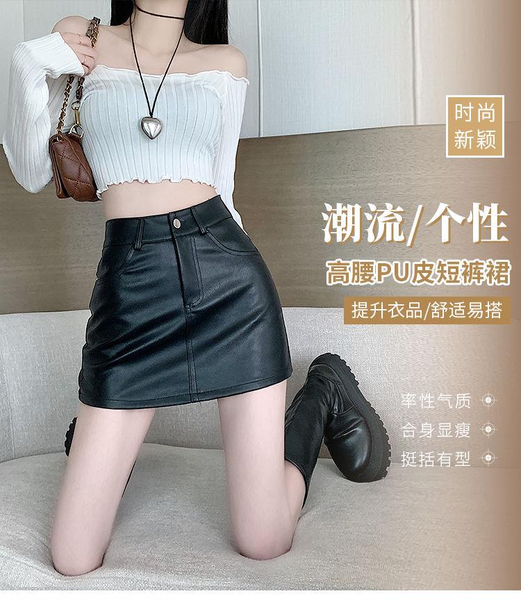 Compre Pu saia 2024 outono e inverno pequena nova cintura alta preta emagrecimento saia curta plus size menina gordinha usar no atacado no Joom.pro