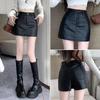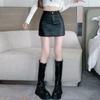 Pu saia 2024 outono e inverno pequena nova cintura alta preta emagrecimento saia curta plus size menina gordinha usar
