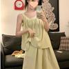 [Algodão] Novo pijama de verão feminino estilo doce casual manga curta conjunto de duas peças