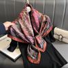 Cross-Border moda all-match Primavera e Outono fina planta impressão artificial seda cetim viagem proteção solar 90x90 lenço de seda para as mulheres