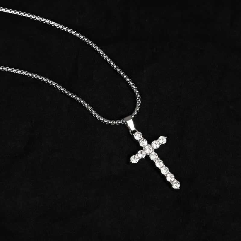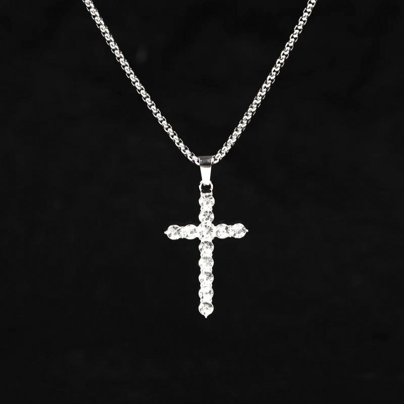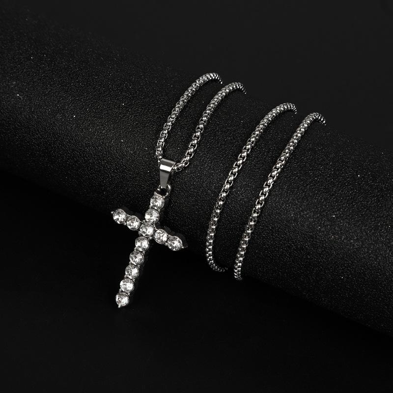 Fabricantes de fornecimento transfronteiriço atacado Europa e Estados Unidos novo pingente de cruz de diamante completo personalidade hip-hop simples colar masculino