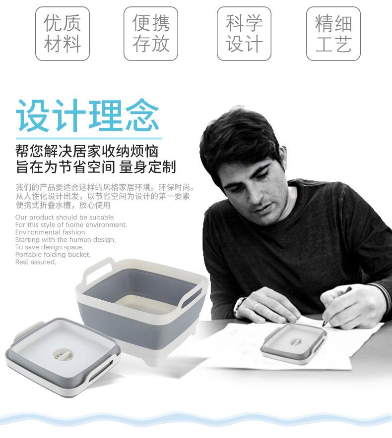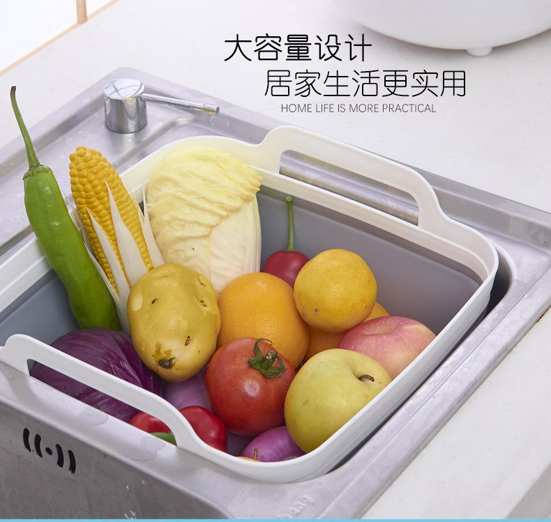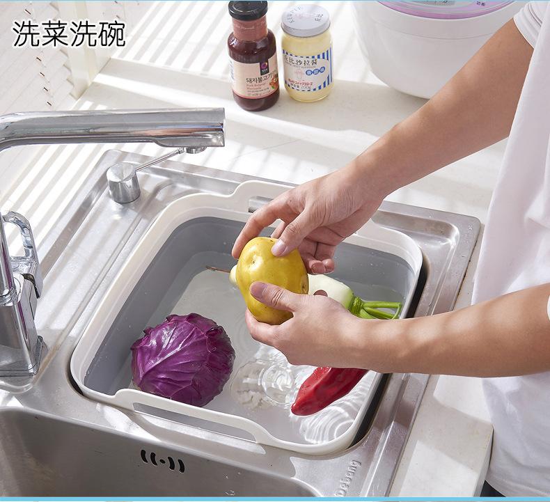 Cesto dobrável transfronteiriço, pia de cozinha, cesto de drenagem retrátil, lavatório de legumes quadrado dobrável portátil, caixa de armazenamento de lavagem de frutas e legumes