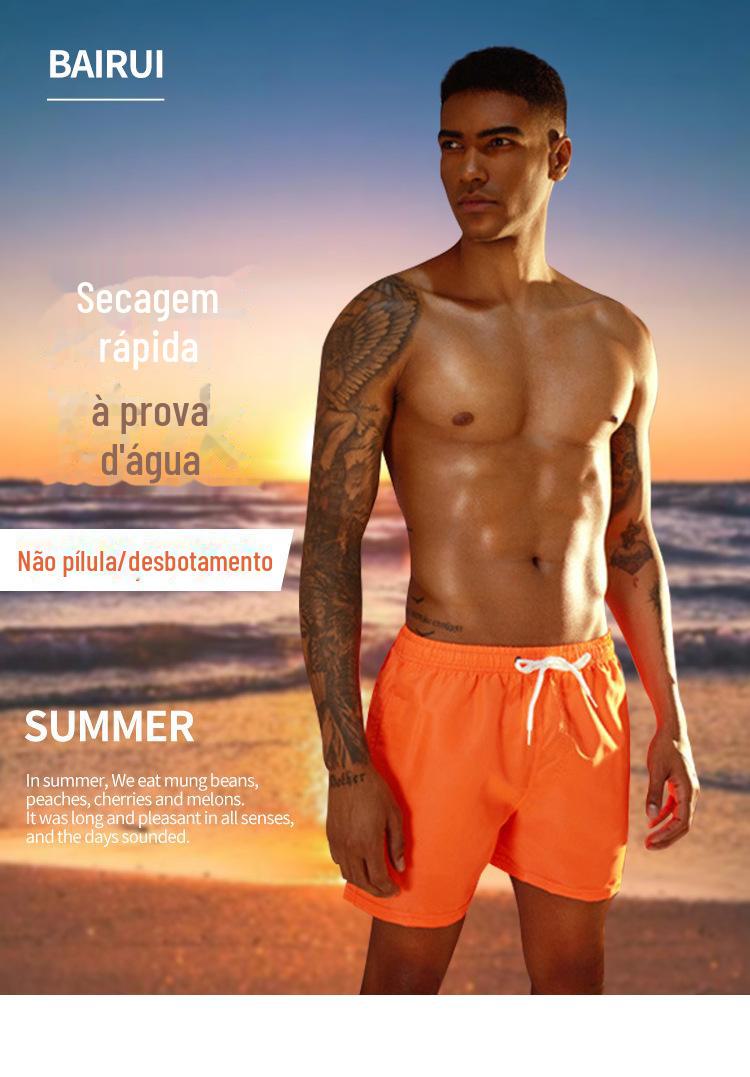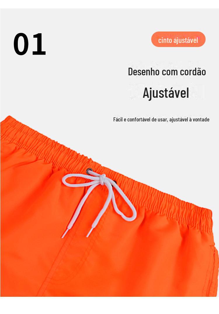 Shorts de praia europeus e americanos de secagem rápida esportes de verão masculinos surfando calças de praia soltas com forro de três pontos calções de cor sólida atacado