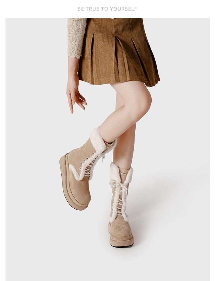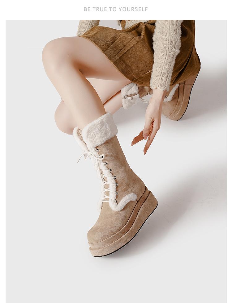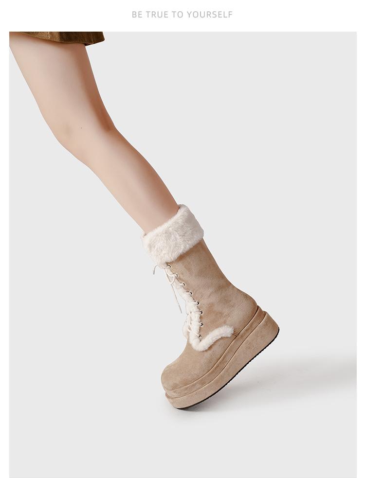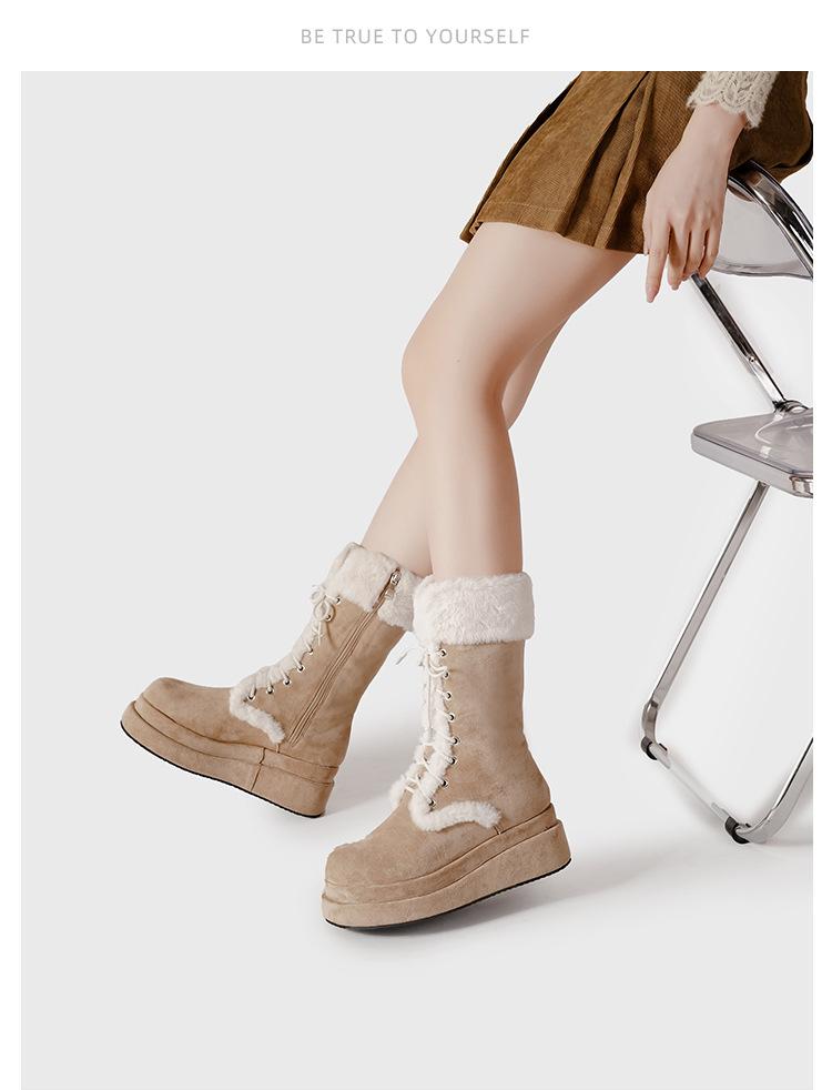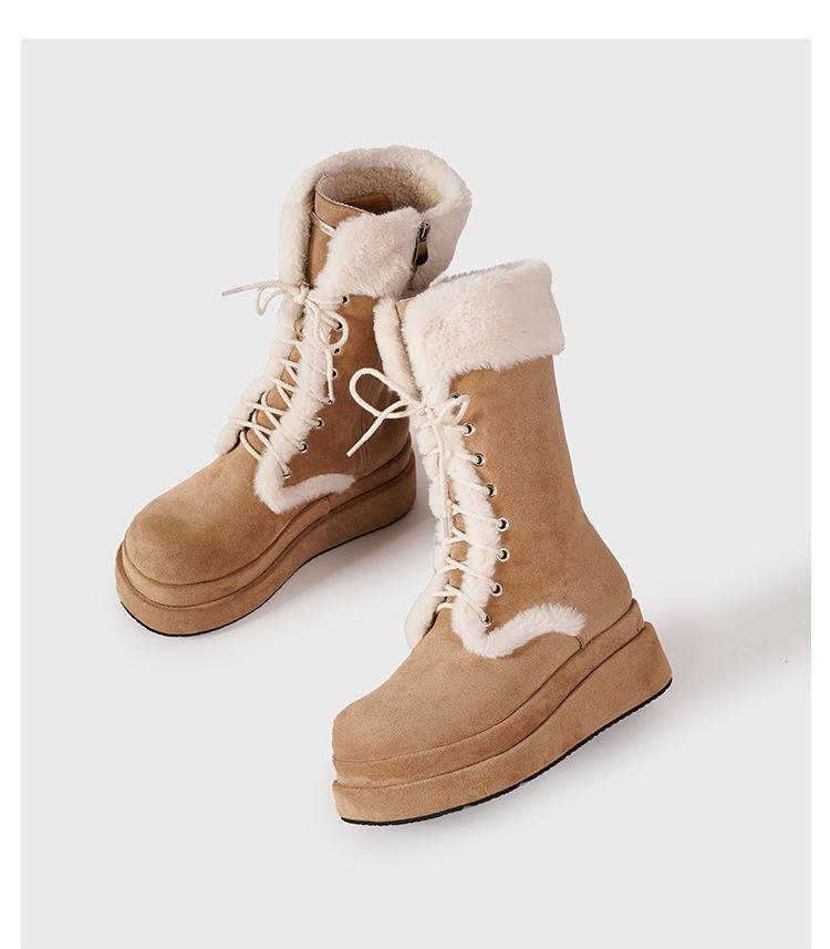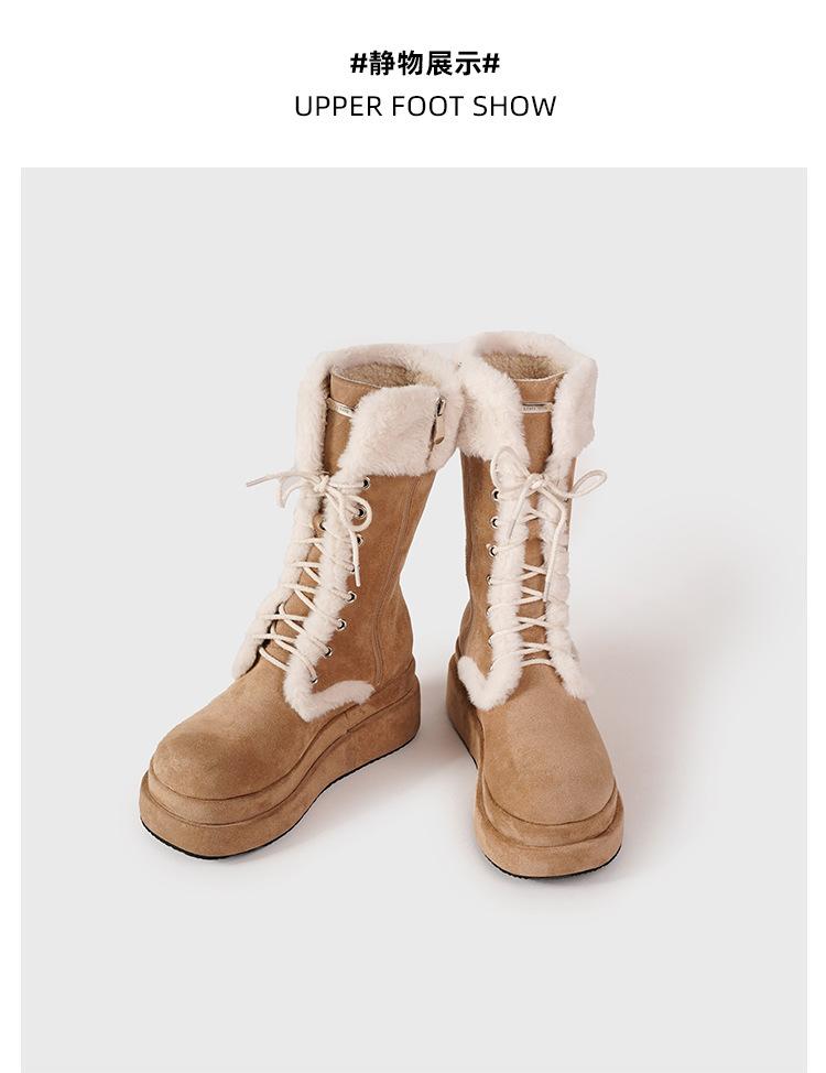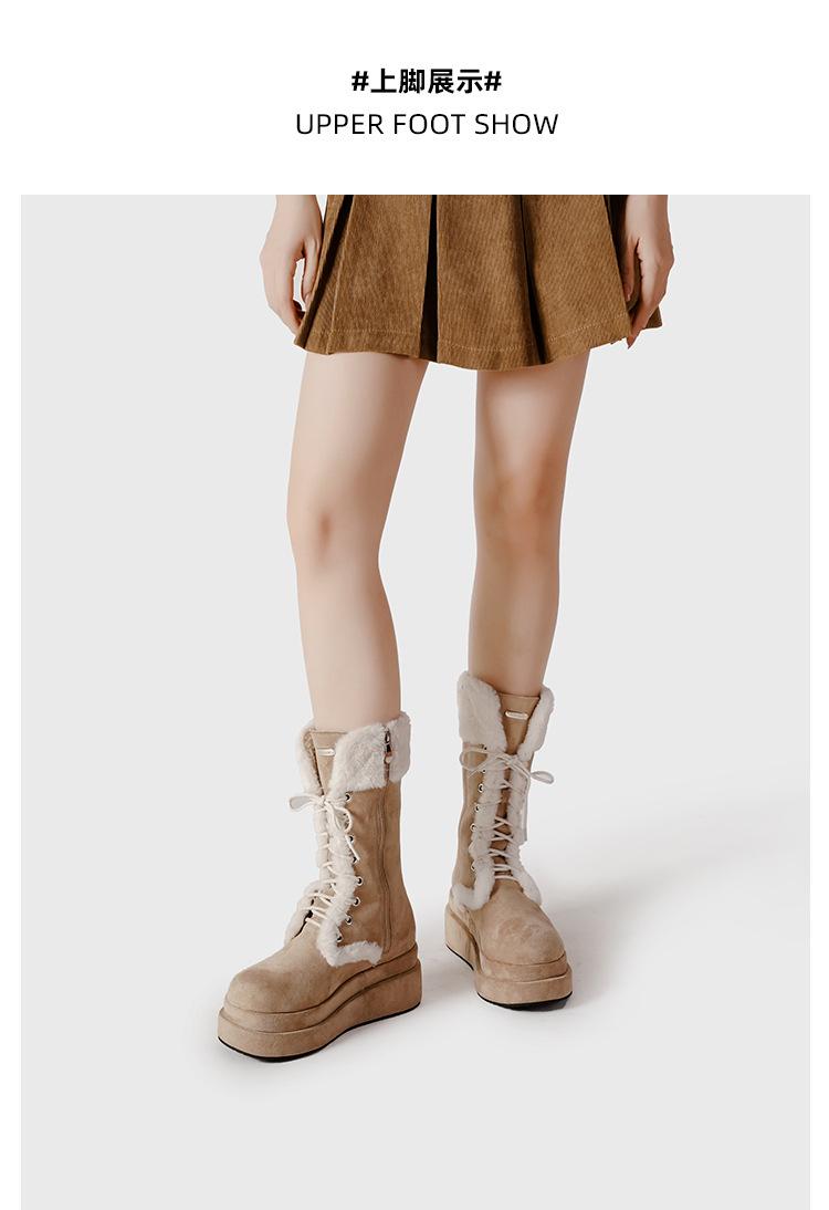 Inverno 2023 Novas Botas de Neve Femininas de Cano Alto e Pele Fluffy, Forradas com Lã, de Algodão Quente e Espessadas