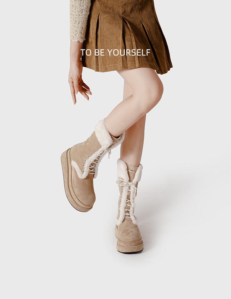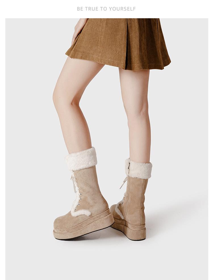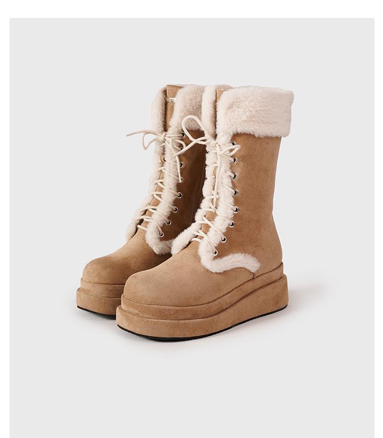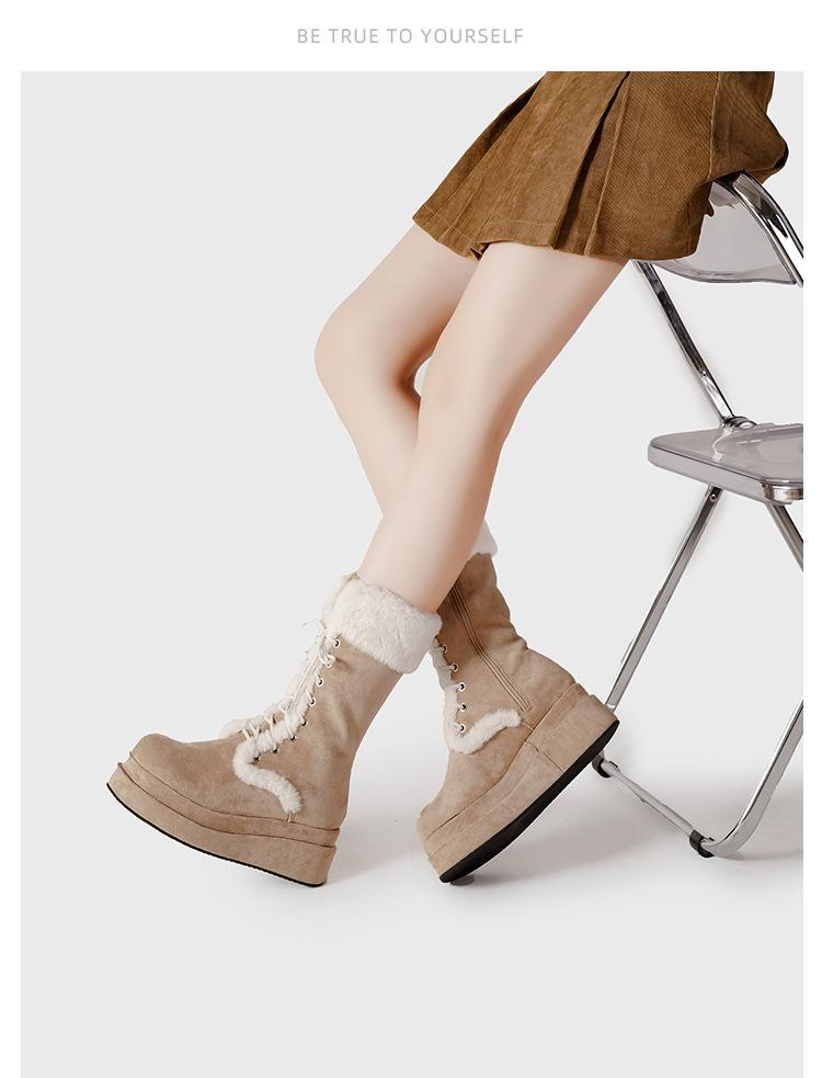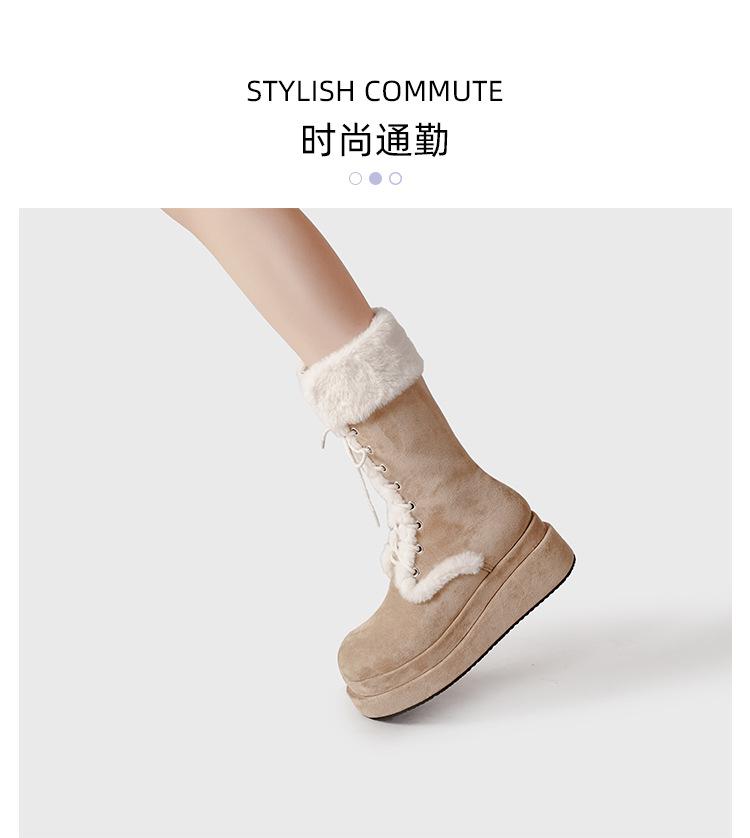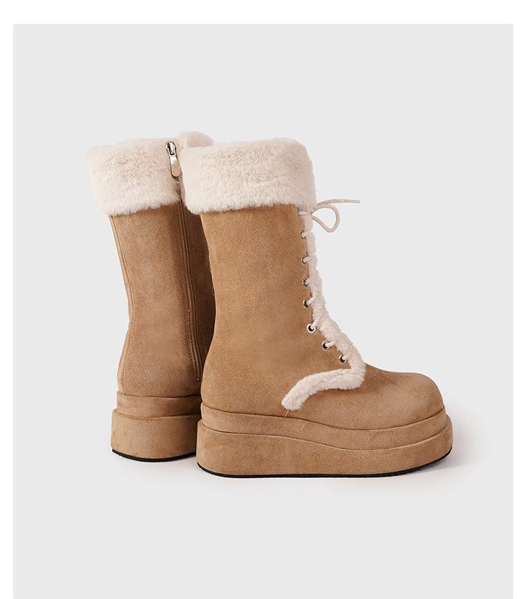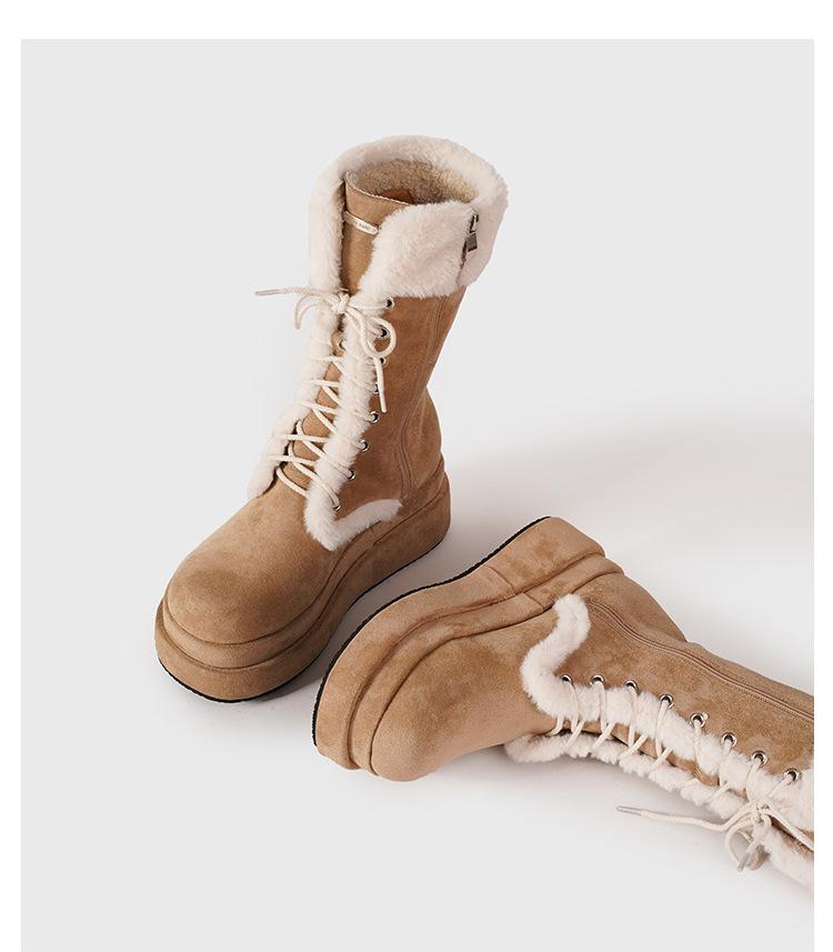 Inverno 2023 Novas Botas de Neve Femininas de Cano Alto e Pele Fluffy, Forradas com Lã, de Algodão Quente e Espessadas