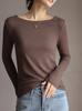 Camiseta Segunda Pele Modal Gola Q Outono e Inverno para Mulheres, Camiseta de Manga Longa Slim Fit, Top Básico Estilo Simples Branco