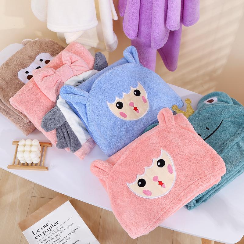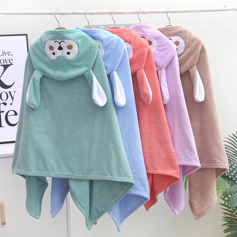 Coral lã toalha de banho capuz capa absorvente Cabo bebê encapuzado bordado roupão de banho dos desenhos animados bebê colcha infantil