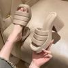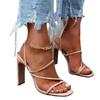 Comércio exterior europeu e americano plus size dedo quadrado salto alto dedo aberto sandálias femininas salto grosso cinto tecido cor sólida moda sandálias Amazon