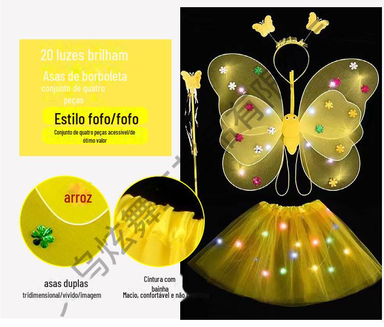 Double layer 20 Light Wings + luminous tutu skirt four-piece set