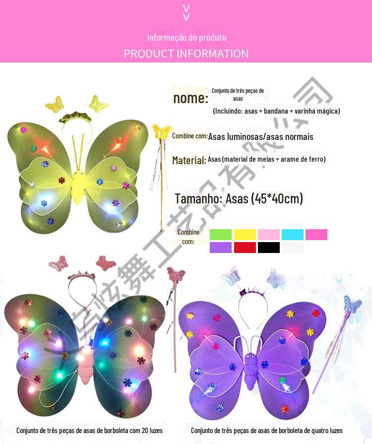 Asas de Borboleta Luminosas Infantis Lantejoulas Arco-Íris Camada Dupla Conjunto de Quatro Peças Totalmente Feito à Mão Adereços Luminosos