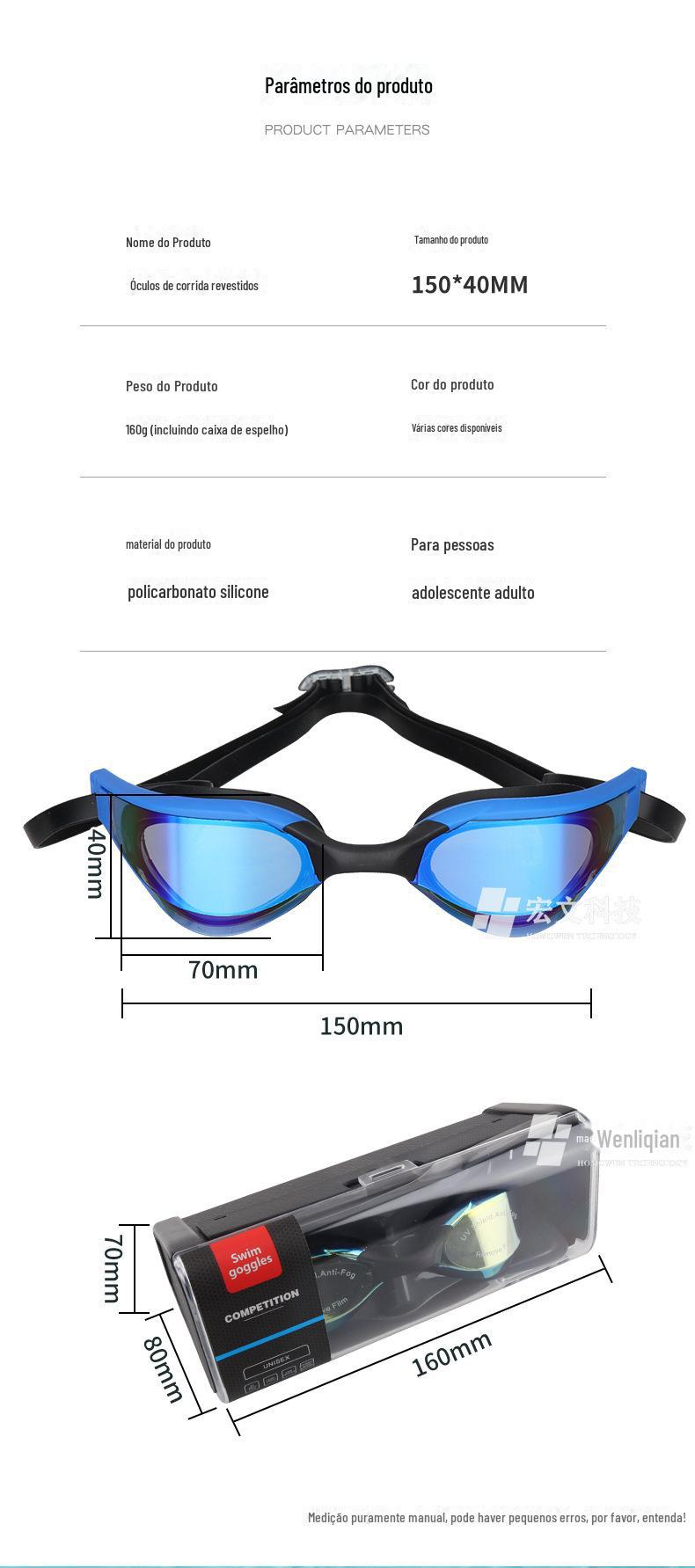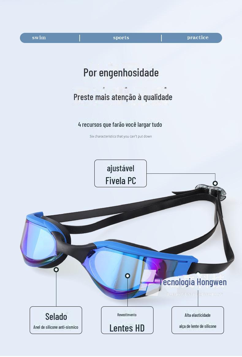 Óculos de natação de corrida HD direto de fábrica, homens e mulheres adultos, impermeável, anti-nevoeiro, chapeamento antiderrapante, óculos de natação atacado