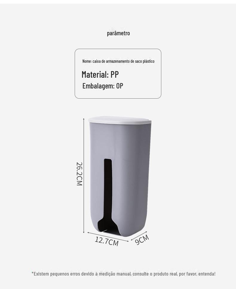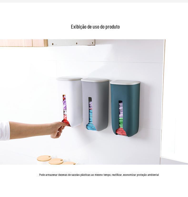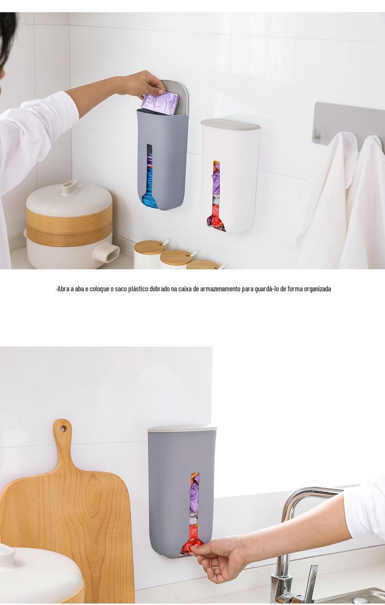 038 Caixa de Armazenamento de Sacolas Plásticas, Porta-Sacos de Lixo de Parede para Cozinha, Caixa de Armazenamento de Sacos de Lixo Deslizante, Tipo Montado na Parede
