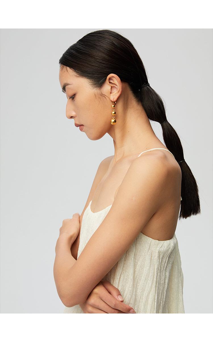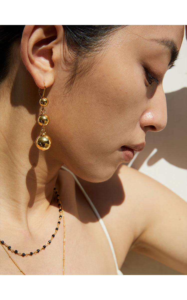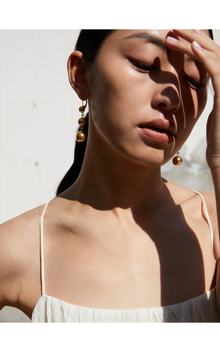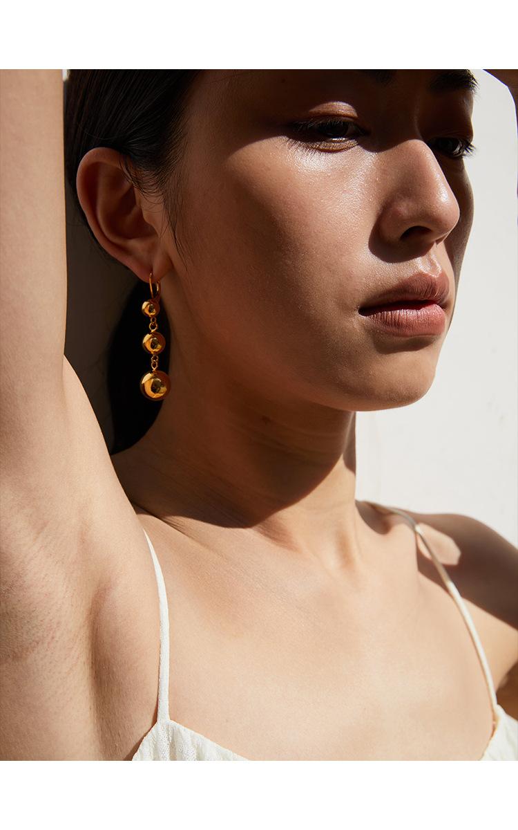 Estilo francês simples moda brincos vintage dourados três pingente bola redonda de ouro em brincos estilo frio para as mulheres