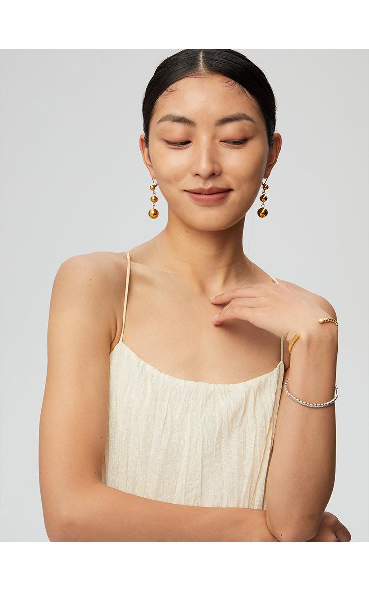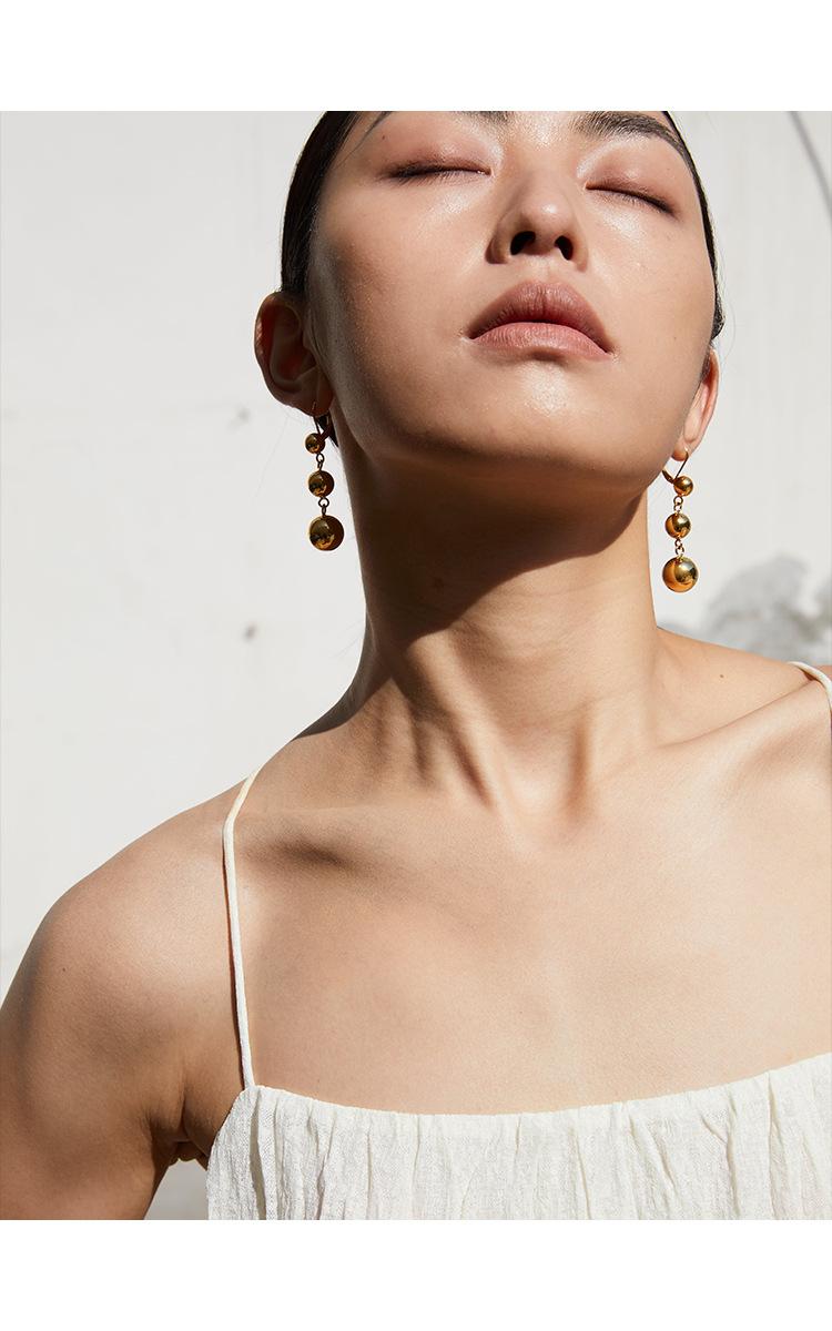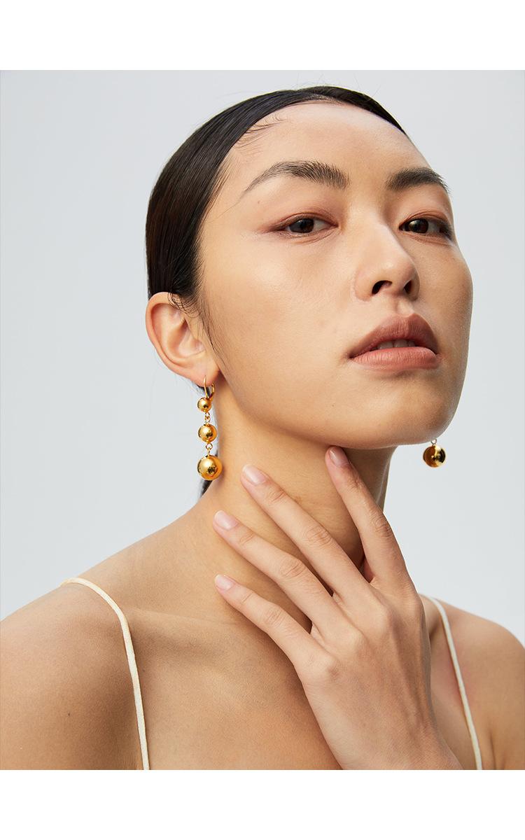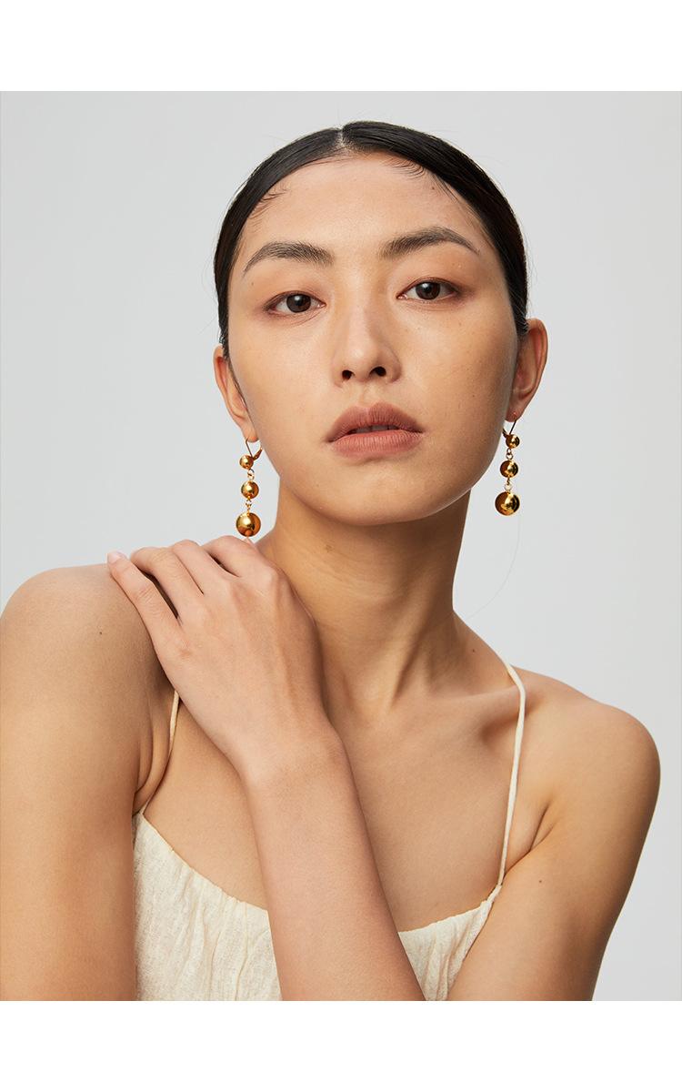 Estilo francês simples moda brincos vintage dourados três pingente bola redonda de ouro em brincos estilo frio para as mulheres